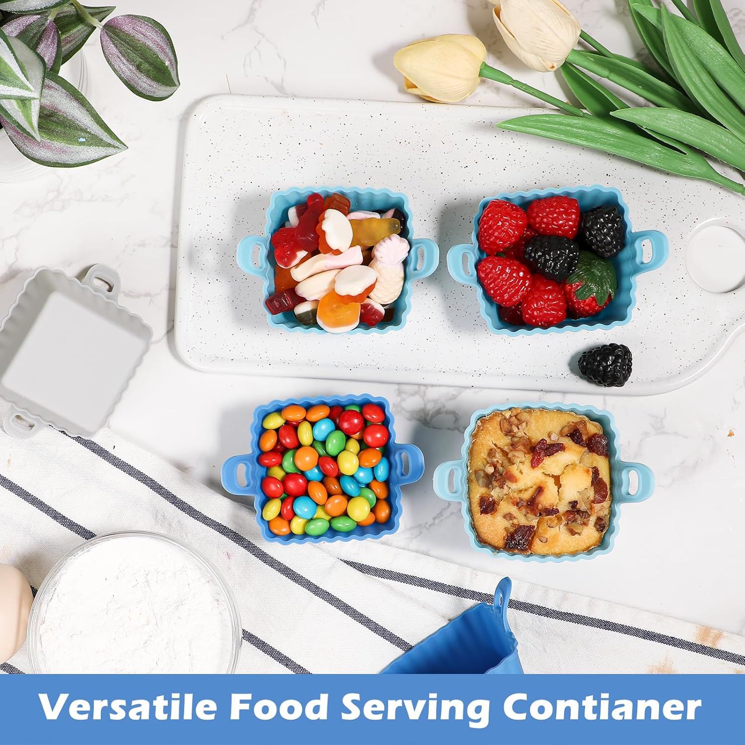 - 【Multifunctional Cupcake Liners】 Ideal choice for making desserts, muffin cakes, souffle, creme brulee and pudding. They are also versatile for serving jams, snack, fruit, dipping sauces, butter and ice cream. Double Anti-slip handles help easy carry and transport