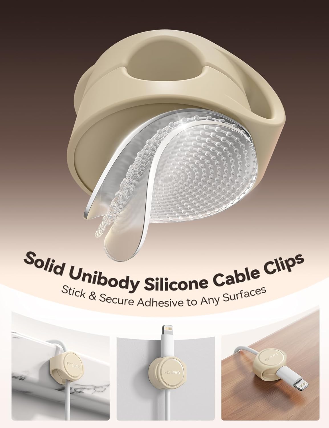 - Special Designed Silicone Magnetic Cable Clips: One-piece silicone molding design FLYLEAD cord organizer with better moldability, the soft silicone material makes this cable organizer more malleable and skin-friendly. After over 10,000 times of tensile tests, the flexible upper and lower joints never broke. With the strongest N55 magnets, covers can be tightly adherent to each other, soft silicone-made FLYLEAD cord holder could embrace cables, which won't squeeze or damage the cables