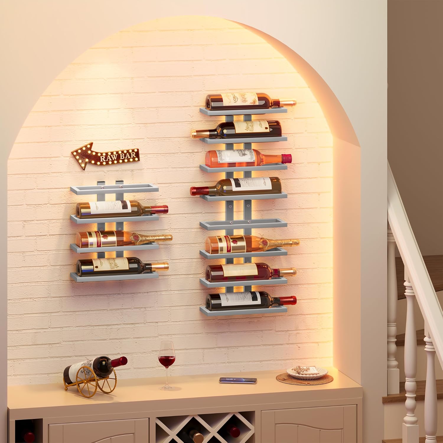 Hoctieon 8 Tier Wall Mount Wine Rack, Wall Racks for Wine Bottles Display and Storage, Hanging Bottle Organizer for Living Room, Dining Room, Wine Cellar, Bar, Grey
