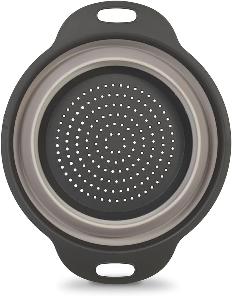 Glad Collapsible Colander Strainer - 2L | Small Pasta Drainer for Kitchen, Vegetables, and Fruit | Round Plastic Foldable Draining Basket for Easy Storage,Grey (Pack of 6)