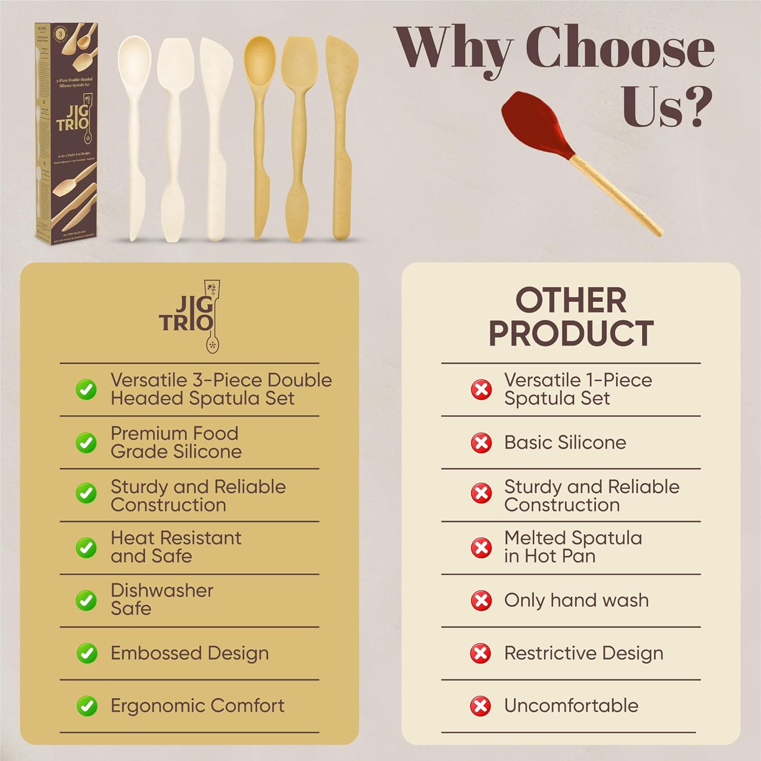 JIG TRIO 3-Piece Double-Headed Silicone Spatula Set – White – Heat-Resistant Baking & Cooking Tools – BPA-Free, Non-Stick Safe, Dishwasher Friendly, Giftable Set