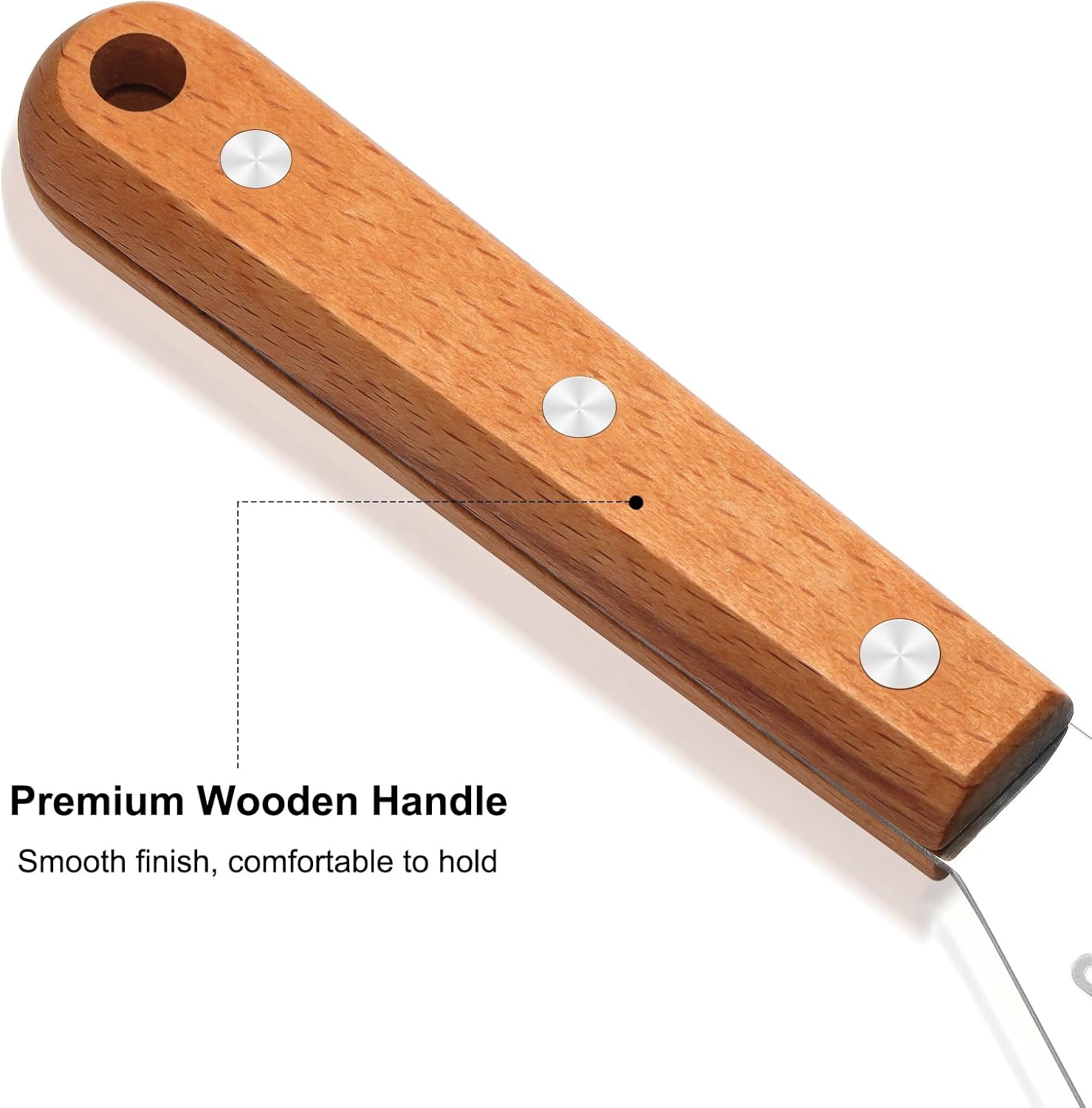 - Heat-Resistant Wood Handle:Featuring an ergonomic, heat-resistant wood handle, our slotted spatula provides a comfortable and secure grip, even during high-heat tasks like frying or grilling, reducing the risk of burns.
