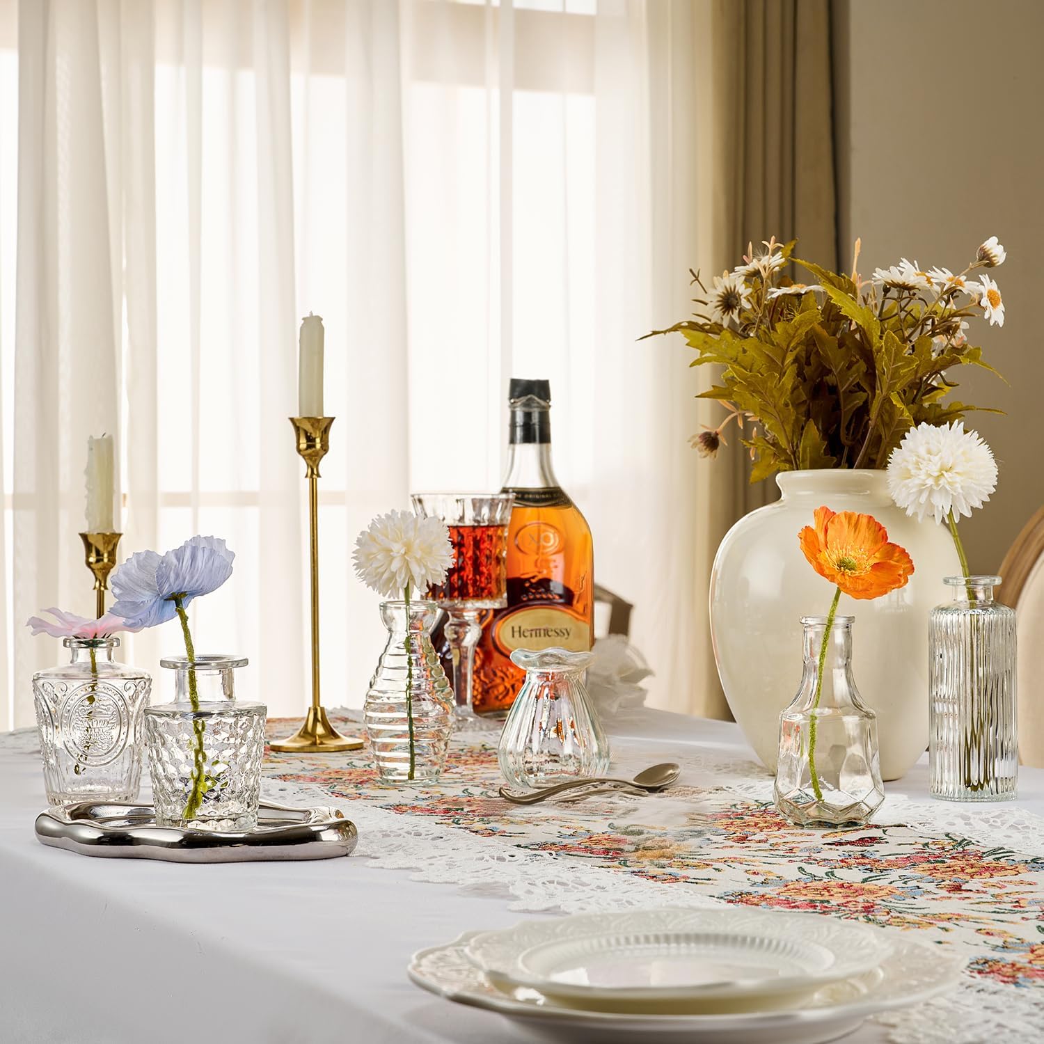 - Versatile Flower Bud Vase Set: This set comprises 40 diverse transparent glass flower bud vases, each adorned with etched designs to further elevate their charm. It is perfectly suited for any home décor. Whether placed as a centerpiece on dining tables, window sills, or wedding banquet tables, these small vintage crystal vases will lend an air of elegance to the setting.