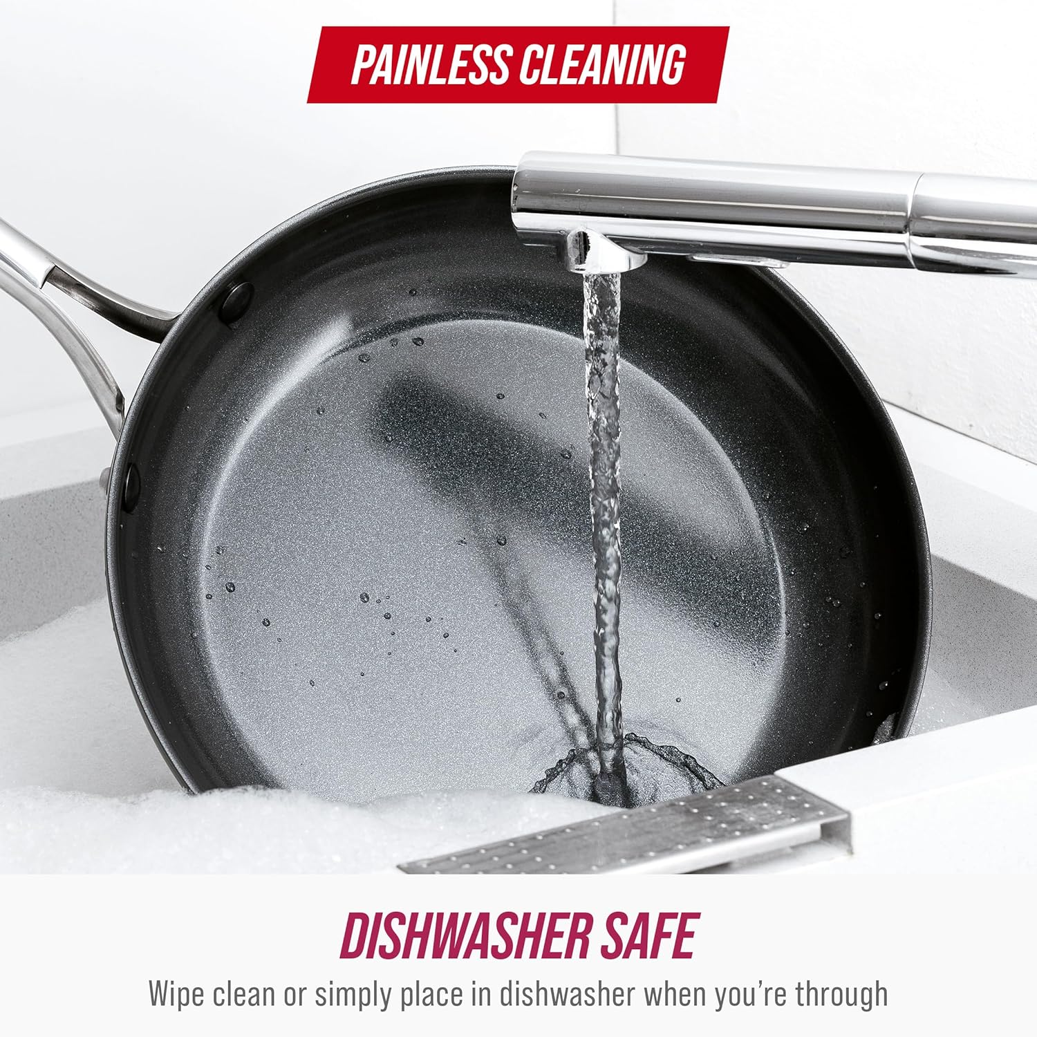 - DIAMOND-TOUGH EXCELLENCE: Metal utensil safe surface with diamond-infused ceramic nonstick - 5x harder and 10x longer lasting than traditional coatings. Tough enough for your toughest recipes.