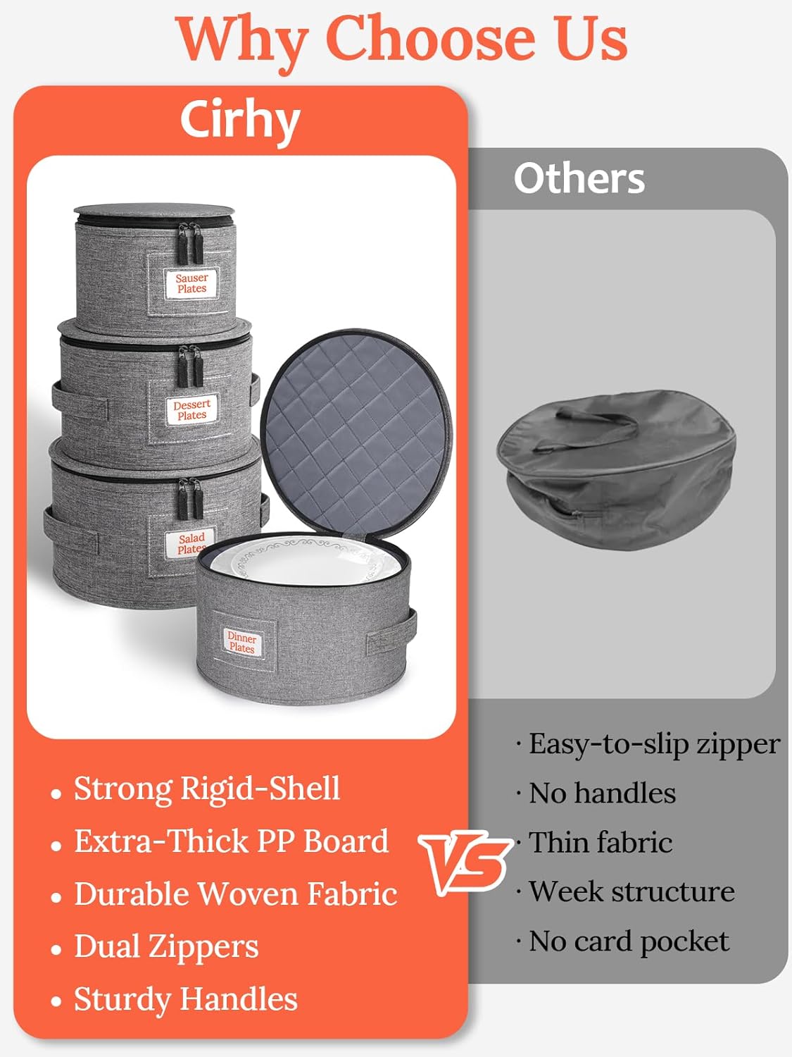 - Easy to Use and Identify: Each plate storage container features a smooth zippered lid for quick access and a clear label slot for easy identification. Whether unpacking for a dinner party or storing long-term, everything is visible and within reach.