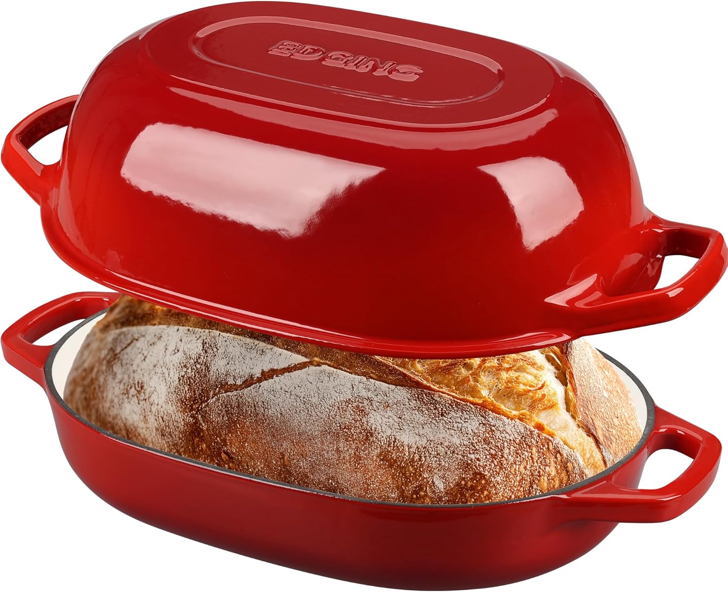 Enameled Cast Iron Dutch Oven Pot with Lid, Oval Dutch Oven for Bread Baking, Bread Oven for Homemade Sourdough Bread Baking, 7qt, Red