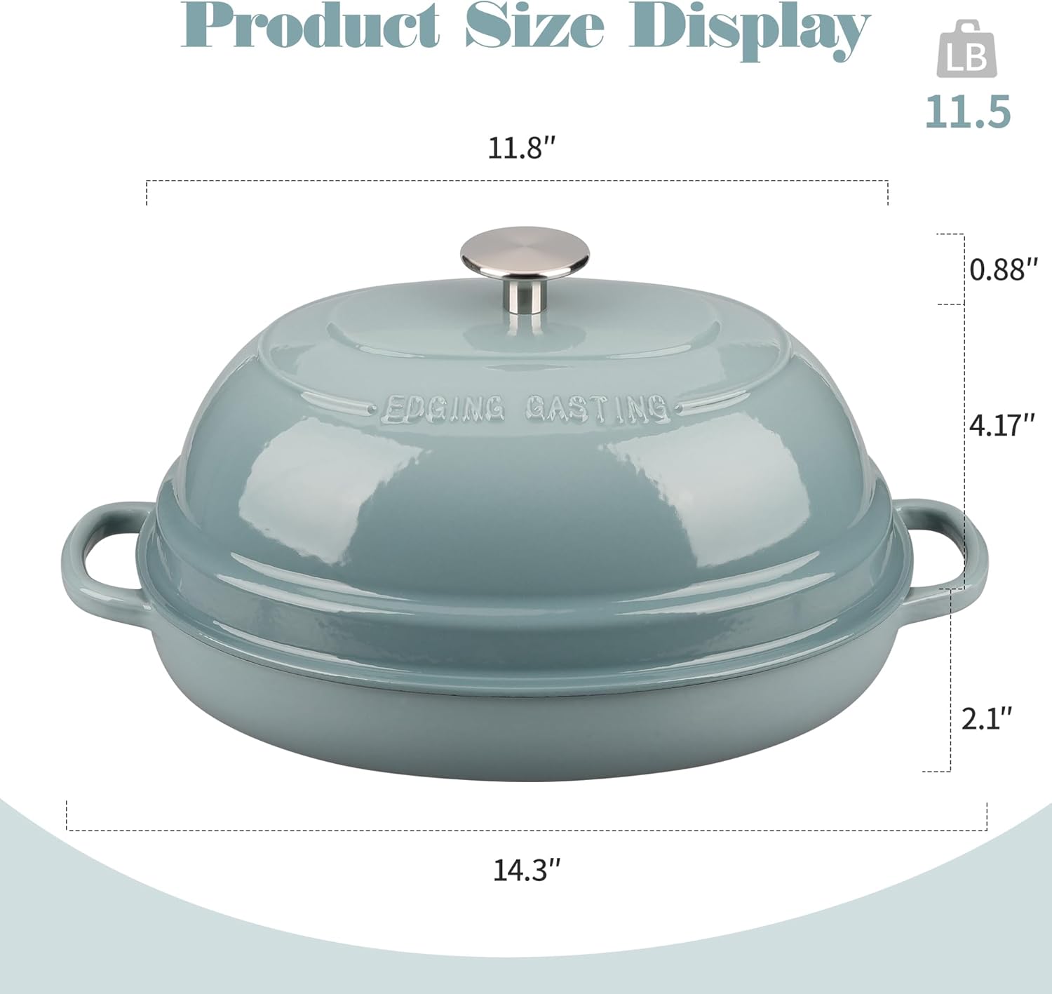 - Ergonomic Design with Secure Lid: Features a well-fitted cast iron lid to lock in moisture and heat, along with sturdy handles for safe and easy handling during baking and serving.