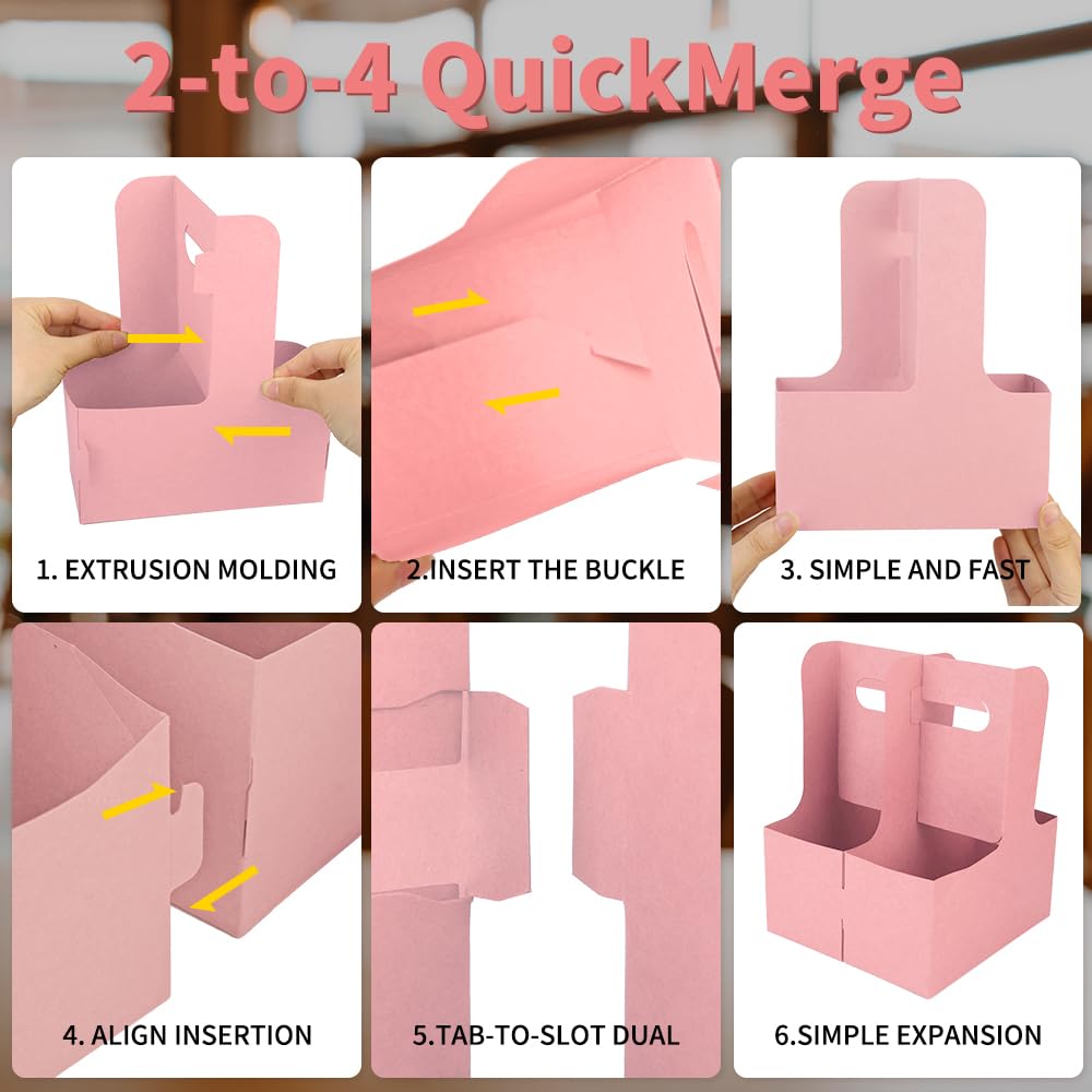 - ăExpandable 2-to-4 Cup DesignăInterlock two carriers via buckles to create a 4-cup drink carrier for delivery