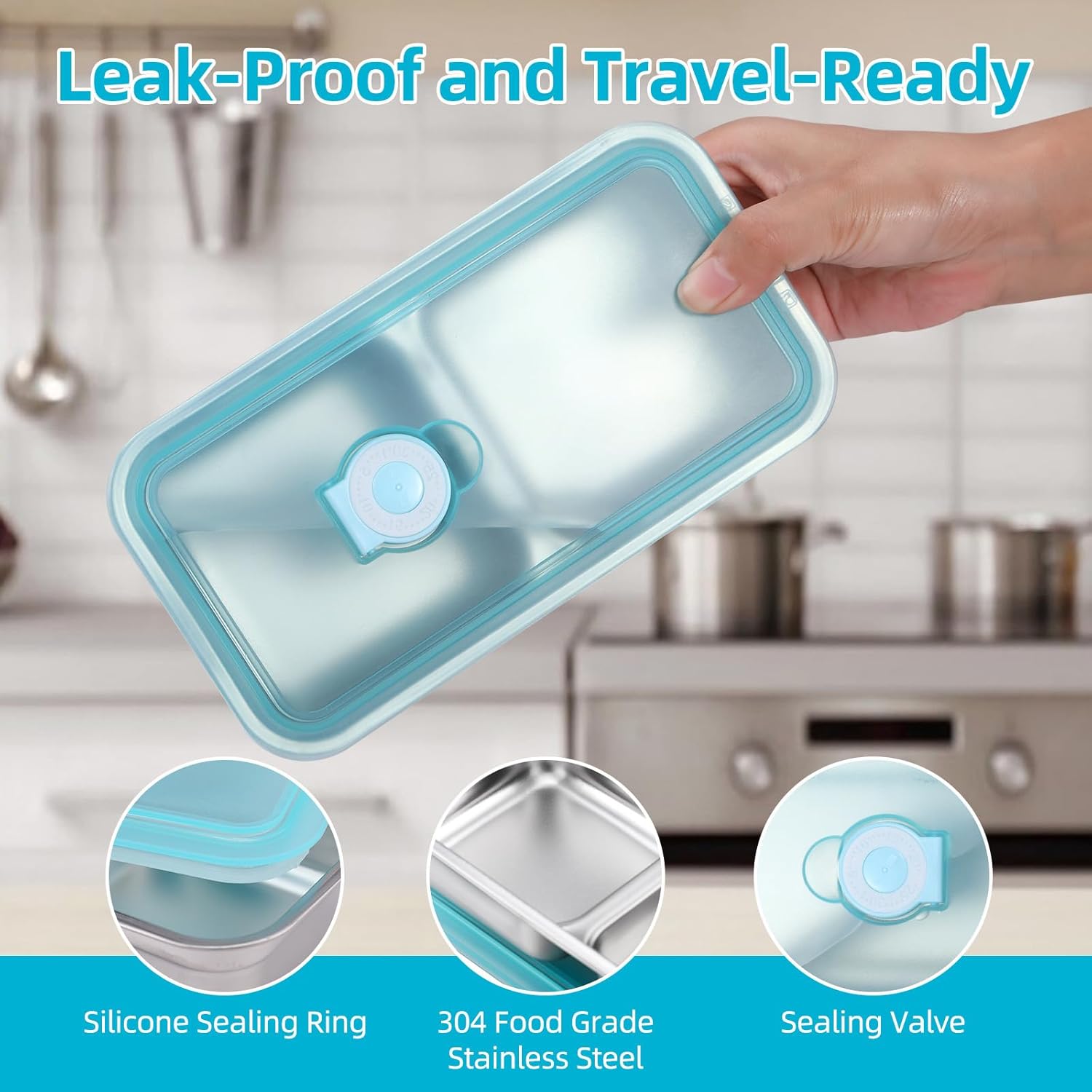 - HIGH-QUALITY MATERIAL: Stainless steel snack boxes feature a double-compartment design, leak-proof seal that keeps lightweight,compact,and versatile, the stainless steel lunchbox wonβt release harmful chemicals, ensuring food safety.