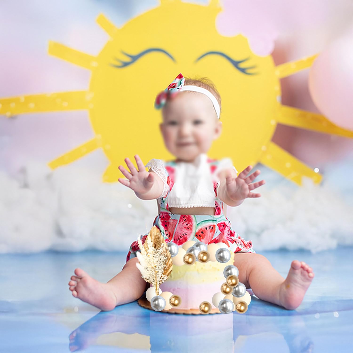 Gyufise 21 Pack Flower Boho Cake Topper Ball Cake Decorations Palm Leaves Plants Cake Decor for Girl Bohemian Princess Theme Wedding Baby Shower Birthday Party Supplies Gold White