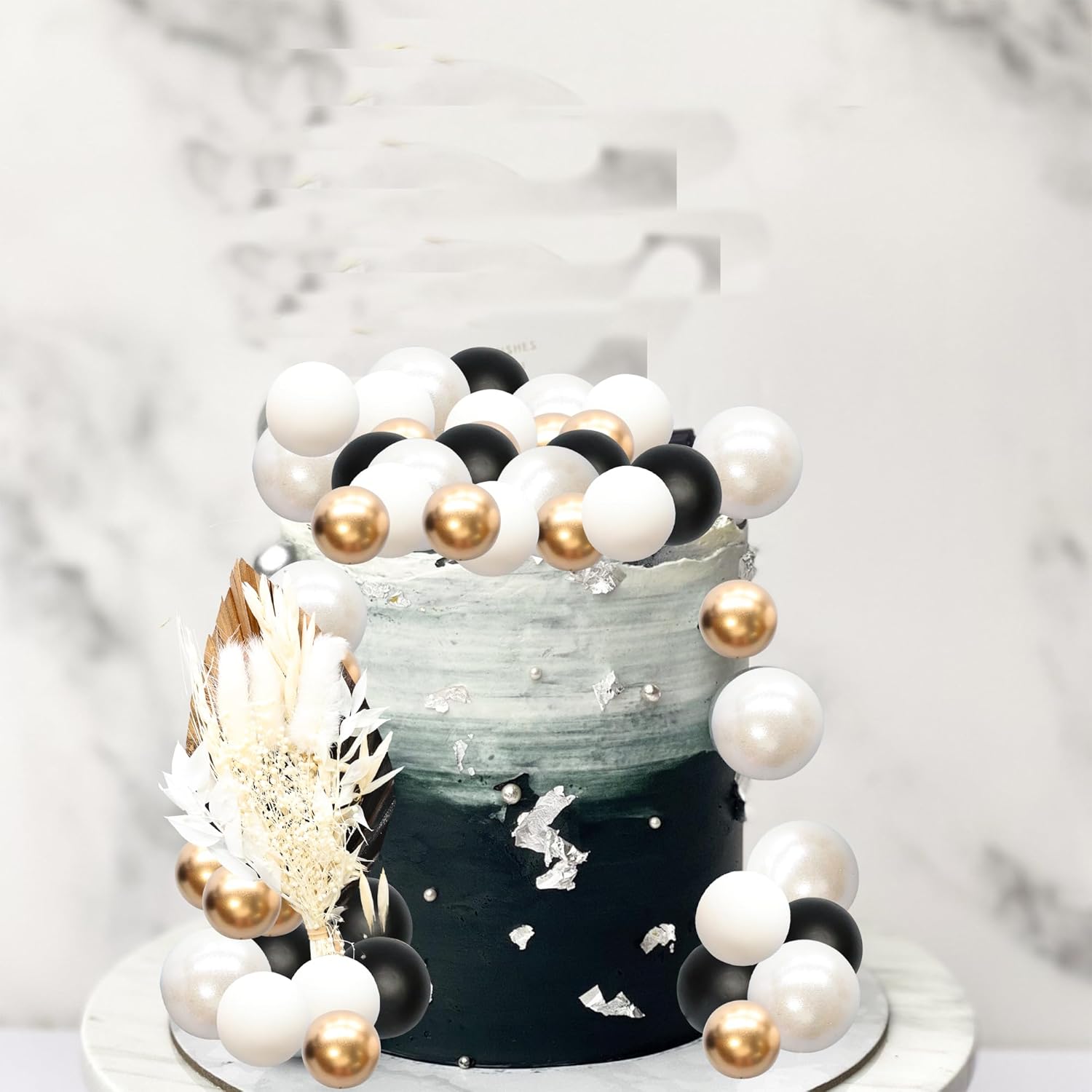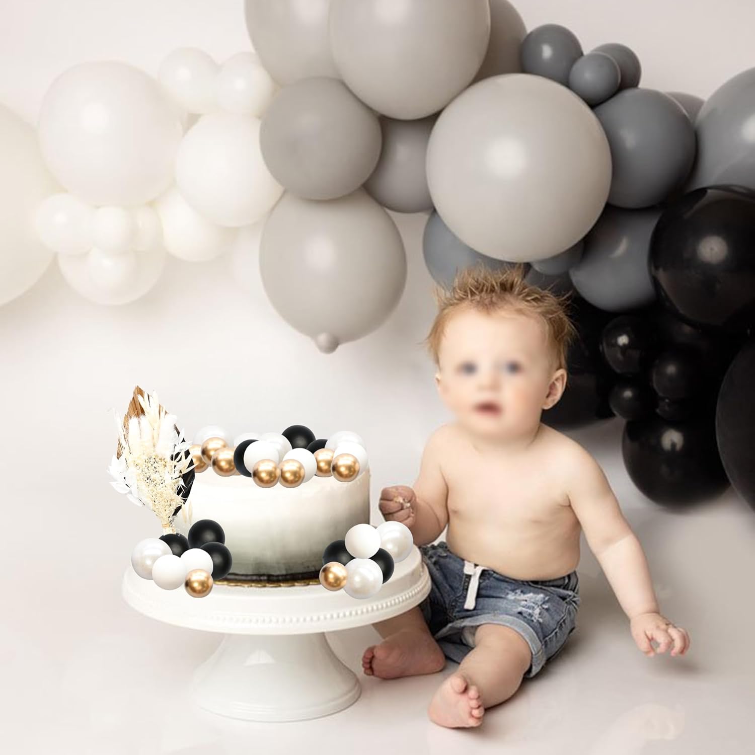 Gyufise 21 Pack Flower Boho Cake Topper Ball Cake Decorations Palm Leaves Plants Cake Decor for Girl Bohemian Princess Theme Wedding Baby Shower Birthday Party Supplies White Gold