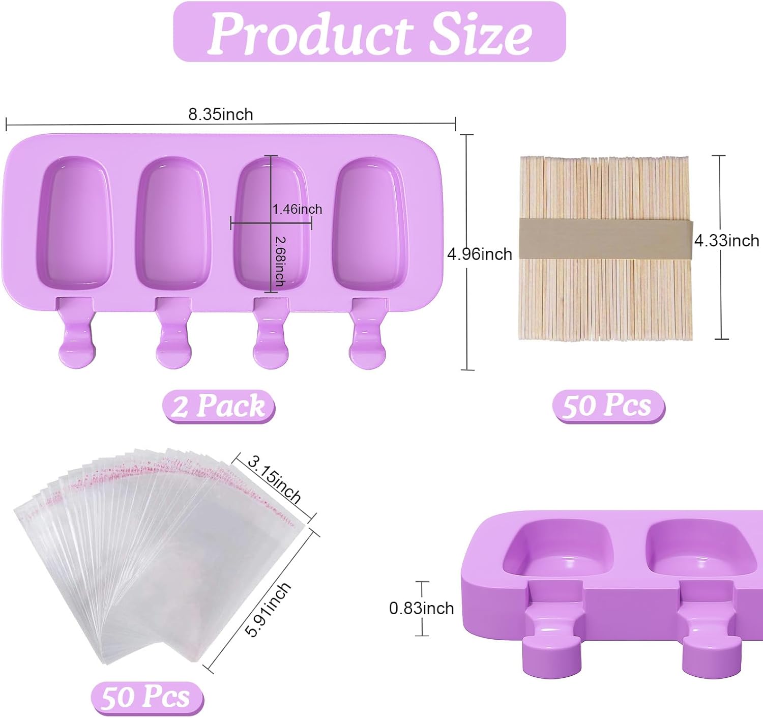Ozera Popsicles Molds, 2 Pack Silicone Cake Pop Molds Reusable Popsicle Maker Ice Pop Cakesicle Molds with 50 Wooden Sticks & 50 Popsicle Bags for Homemade DIY Popsicles