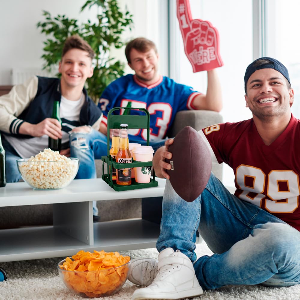 Bodaon 4 Cup Drink Carrier with Handle, Plastic Cup Carriers for Drinks, Drink Holder for Car, GrubHub/Eats Doordash Accessories, Portable Foldable Reusable Mobile, Use for Food Delivery Bag, Green
