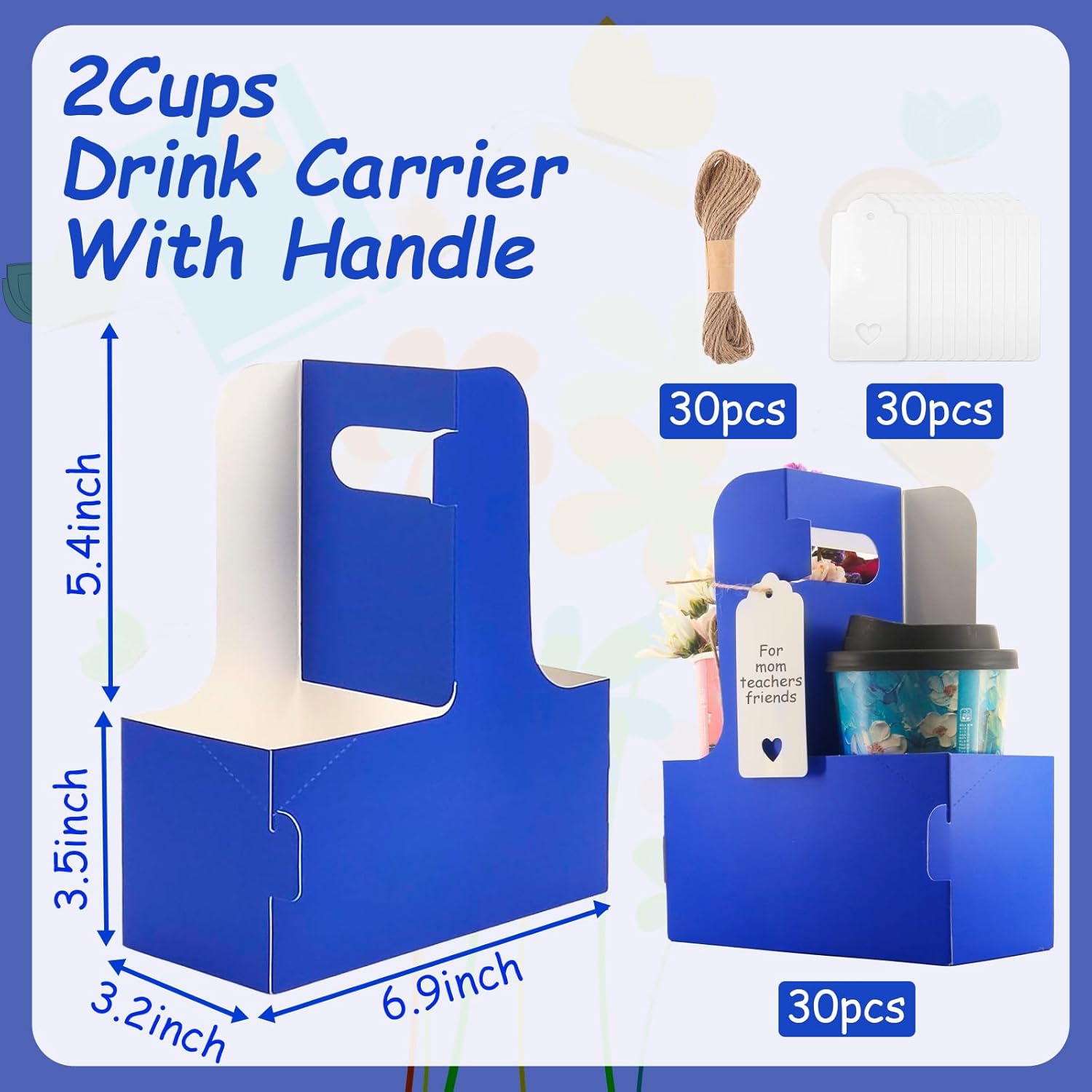 - Sufficient quantity: Our coffee holder package contains a total of 30 blue cardboard two-cup drink holders, and also comes with love cards and rope. You can write their message or wishes on the card and place them on the paper cup holder with the rope. It is suitable for Teacher Appreciation Week and Mother's Day, Valentine's Day and other festivals