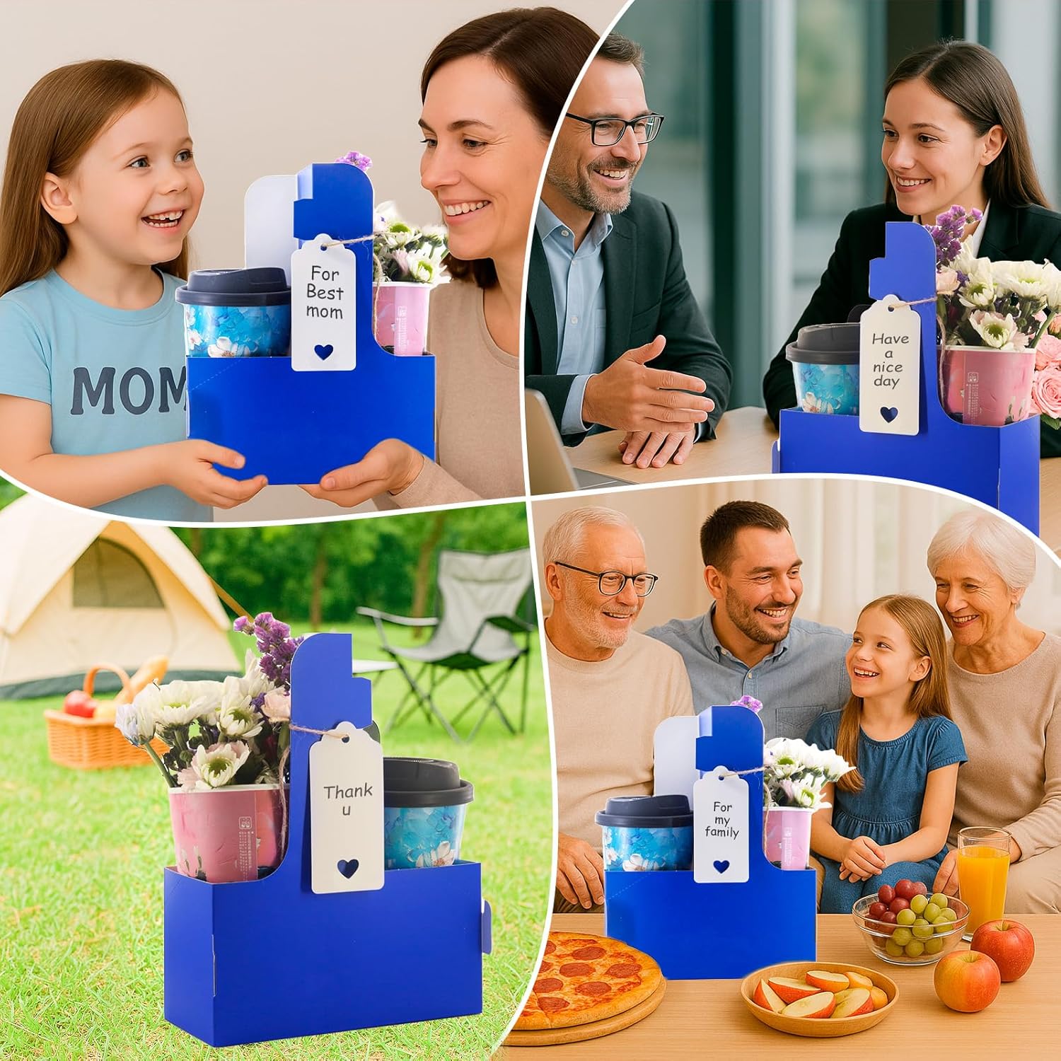 - Sufficient quantity: Our coffee holder package contains a total of 10 blue cardboard two-cup drink holders, and also comes with love cards and rope. You can write their message or wishes on the card and place them on the paper cup holder with the rope. It is suitable for Teacher Appreciation Week and Mother's Day, Valentine's Day and other festivals