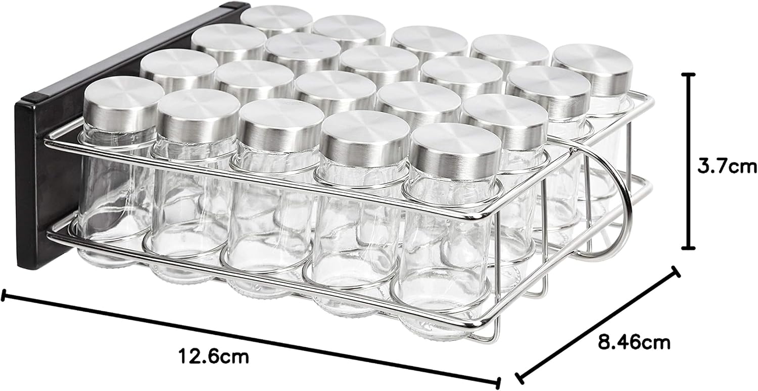 - CONVENIENT STORAGE SOLUTION: The spice shelf features 20 storage slots with clear glass spice jars with lids, making it easy to see and access your spices