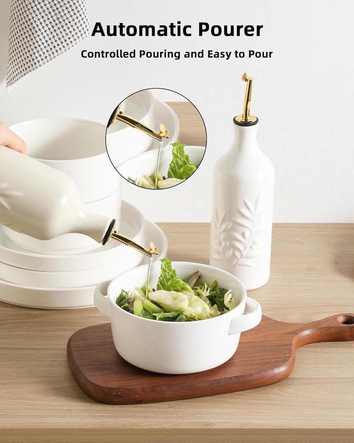Sweejar Ceramic Olive Oil Dispenser Bottle 20 Oz Relief Opaque Oil Cruet Protects To Reduce Oxidation Suitable for Storage Vinegar, Soy Sauce, Coffee Syrup, Liquids, Set of 1 (Beige Gold Spout)