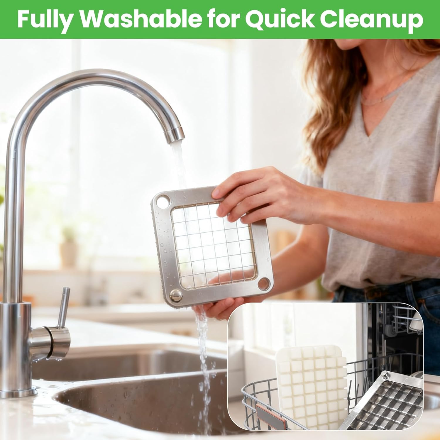 - Quick Install & Easy Cleaning – Installs in minutes—just attach, tighten, and insert. Washable with water or a simple kitchen brush for fast cleanup.