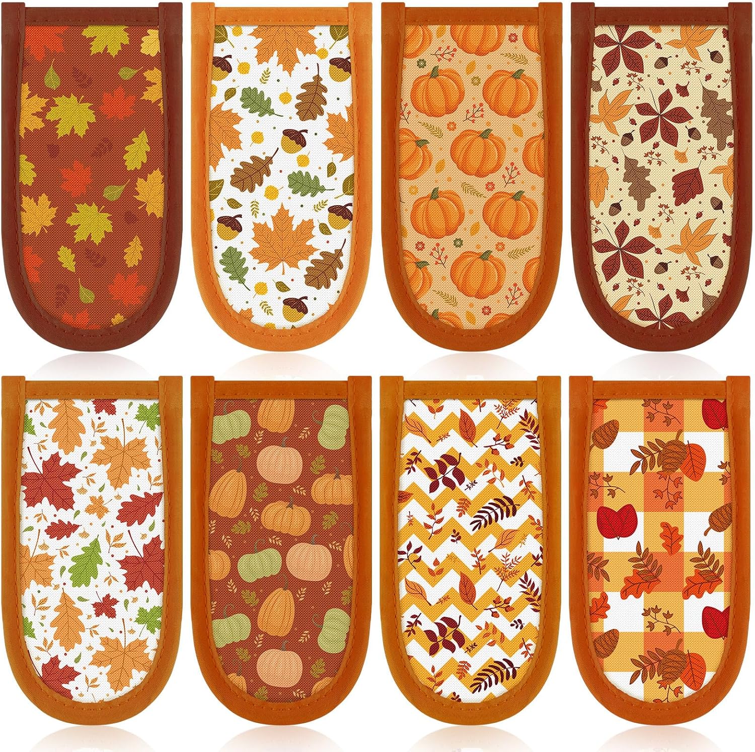 Patelai 8 Pieces Fall Cast Iron Skillet Handle Covers Pan Handle Holder Sleeve Heat Resistant Non Slip Skillet Pot Holders Mitt for Fall Thanksgiving Kitchen Cooking BBQ Baking Cookware, 8 Styles