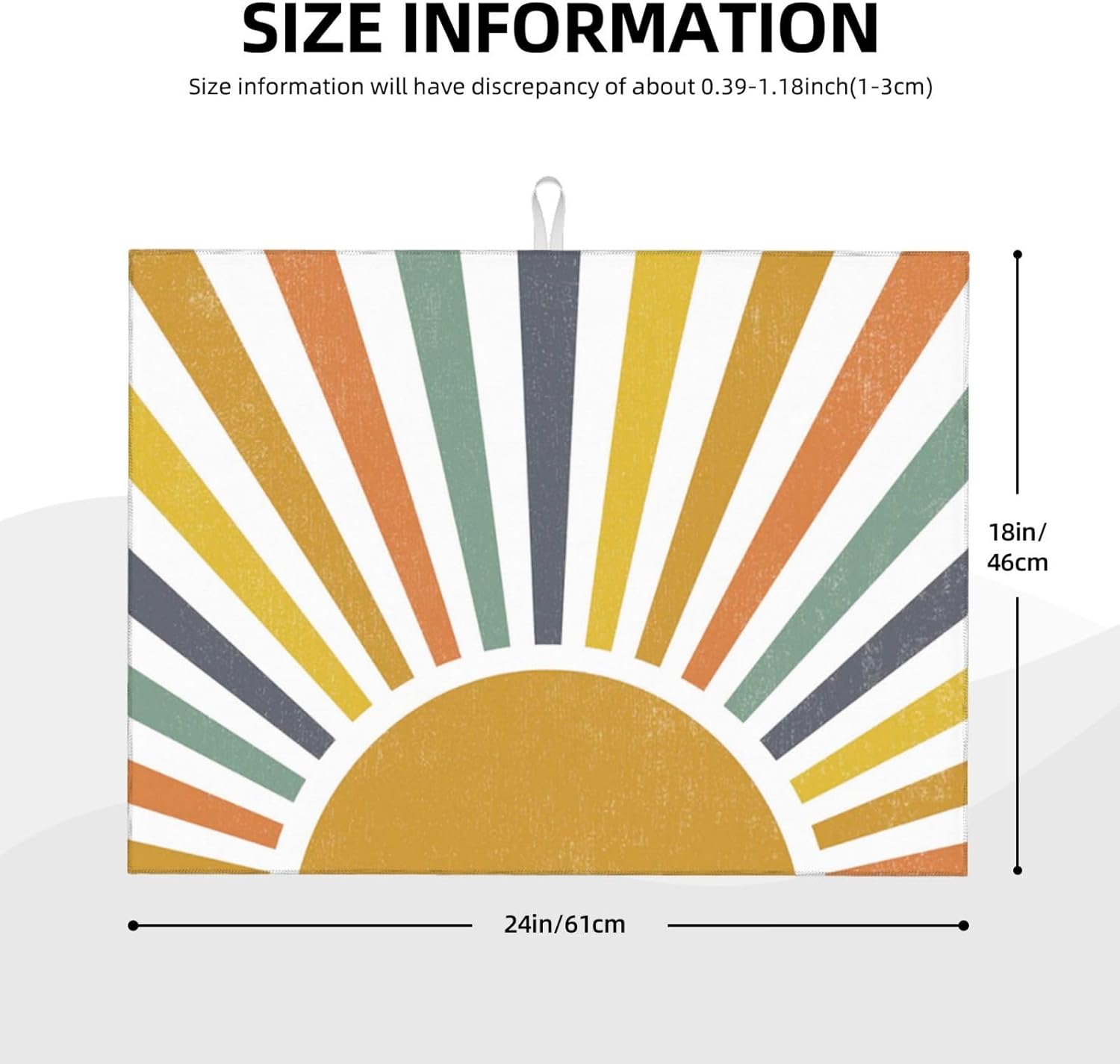 Sunshine Dish Drying Mat 18x24 for Kitchen Counter, Stripes Yellow Sun Decorative Absorbent Coffee Mat Dish Drying Pad Coffee Bar Dish Drainer Rack Mat Drainer Mat