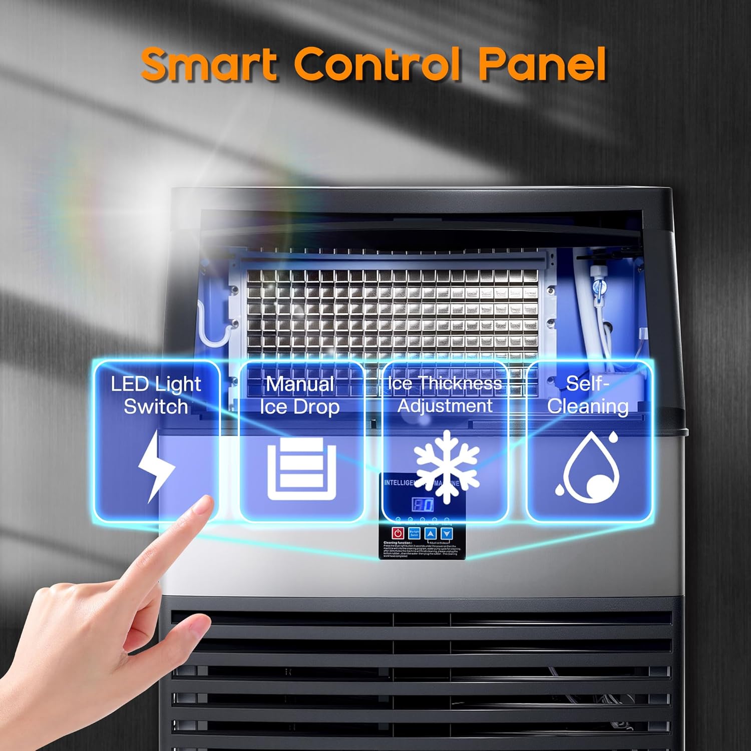 - 【Smart Control Panel】Features real-time monitoring, 6-level ice thickness adjustment, 1-24h timer, and one-touch self-cleaning, ensuring effortless operation, energy efficiency, and optimal ice-making for home and commercial use.