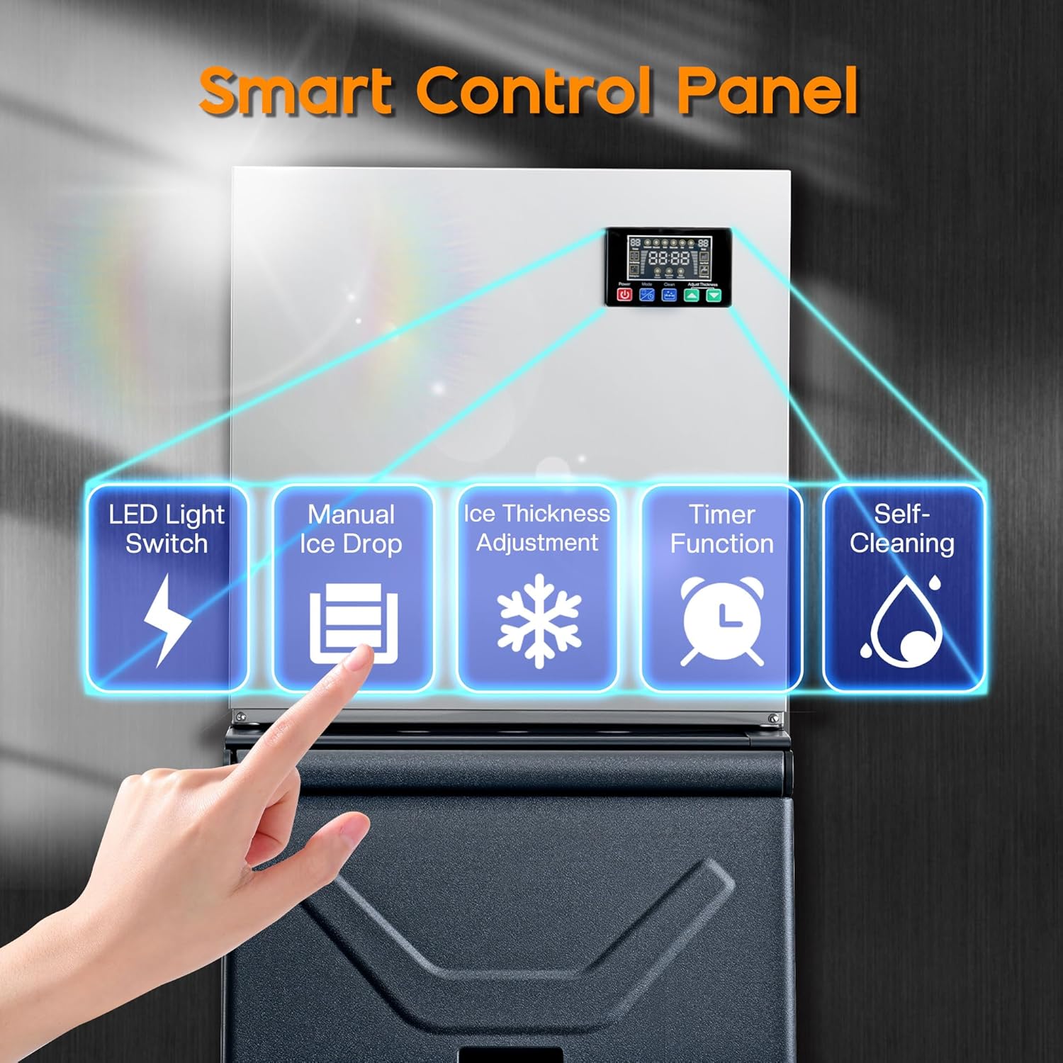 - 【Smart Control Panel】Features real-time monitoring, 6-level ice thickness adjustment, 1-24h timer, and one-touch self-cleaning, ensuring effortless operation, energy efficiency, and optimal ice-making for home and commercial use.