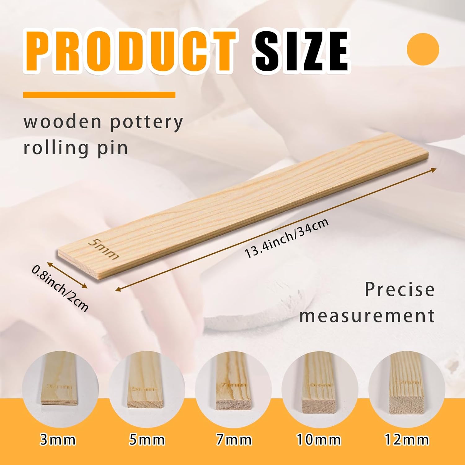 - 10-Piece 5-Size Wooden Thickness Guide Set:Includes 10 precision-cut guides (2 of each size:3mm/5mm/7mm/10mm/12mm) in 13.4inch length,perfect for achieving uniform clay thickness in polymer,pottery,and air-dry clay projects
