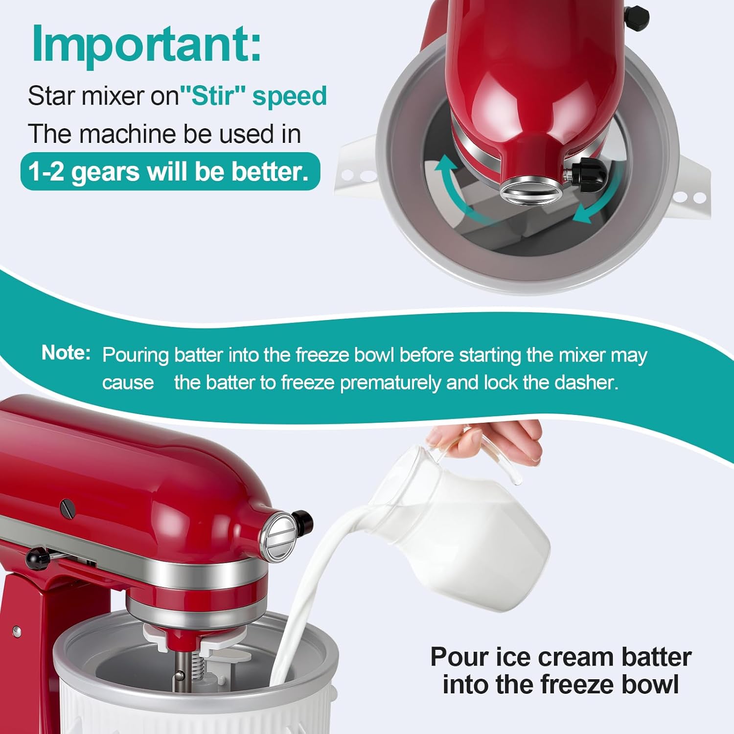 - EASY CLEANING & QUALITY SUPPORT: The attachment fit with the kitchenaid ice cream maker is dishwasher-safe on the top rack. Freezer bowls should be gently washed and dried before use.