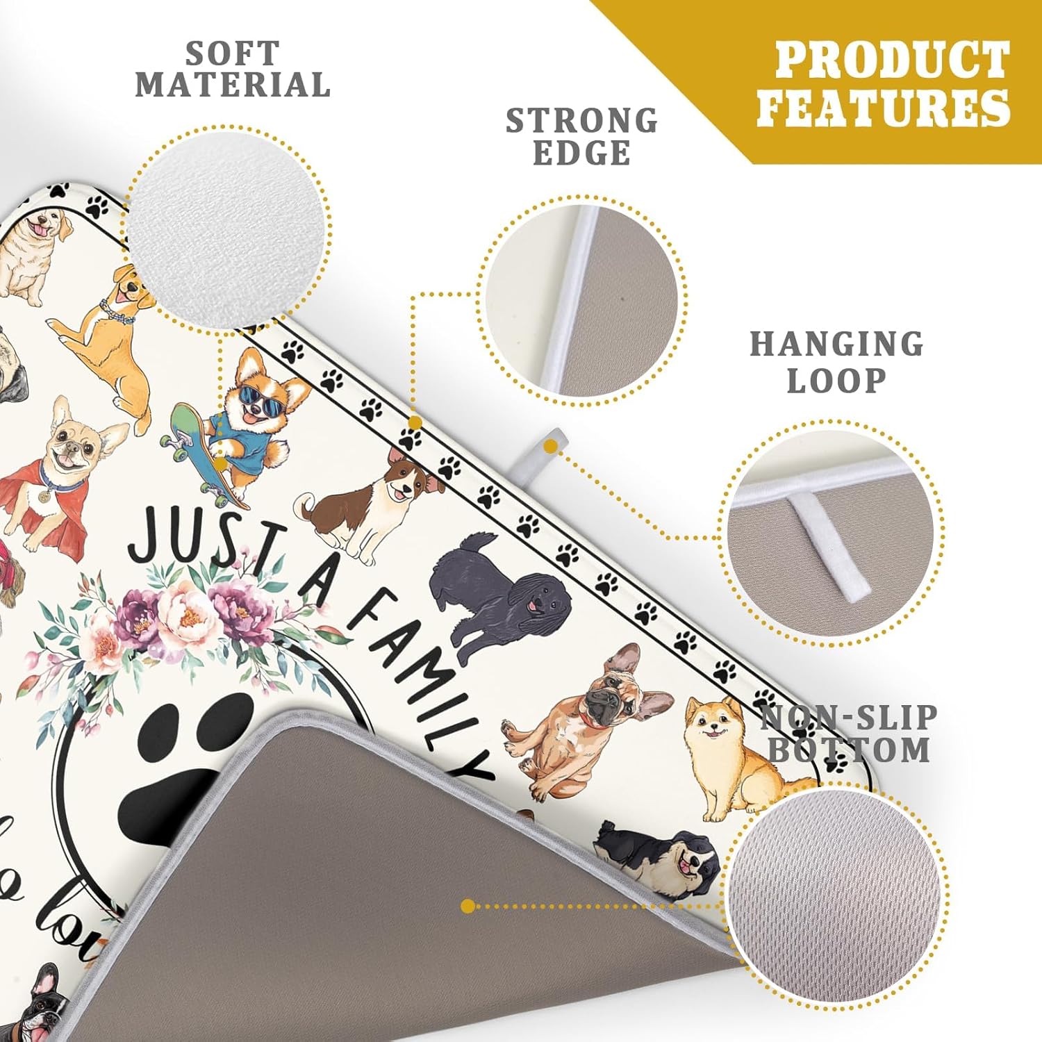 Dog Family Dish Drying Mat Cartoon Pet 18 X 24 in Absorbent Printed Drying Pad for Dog Lover