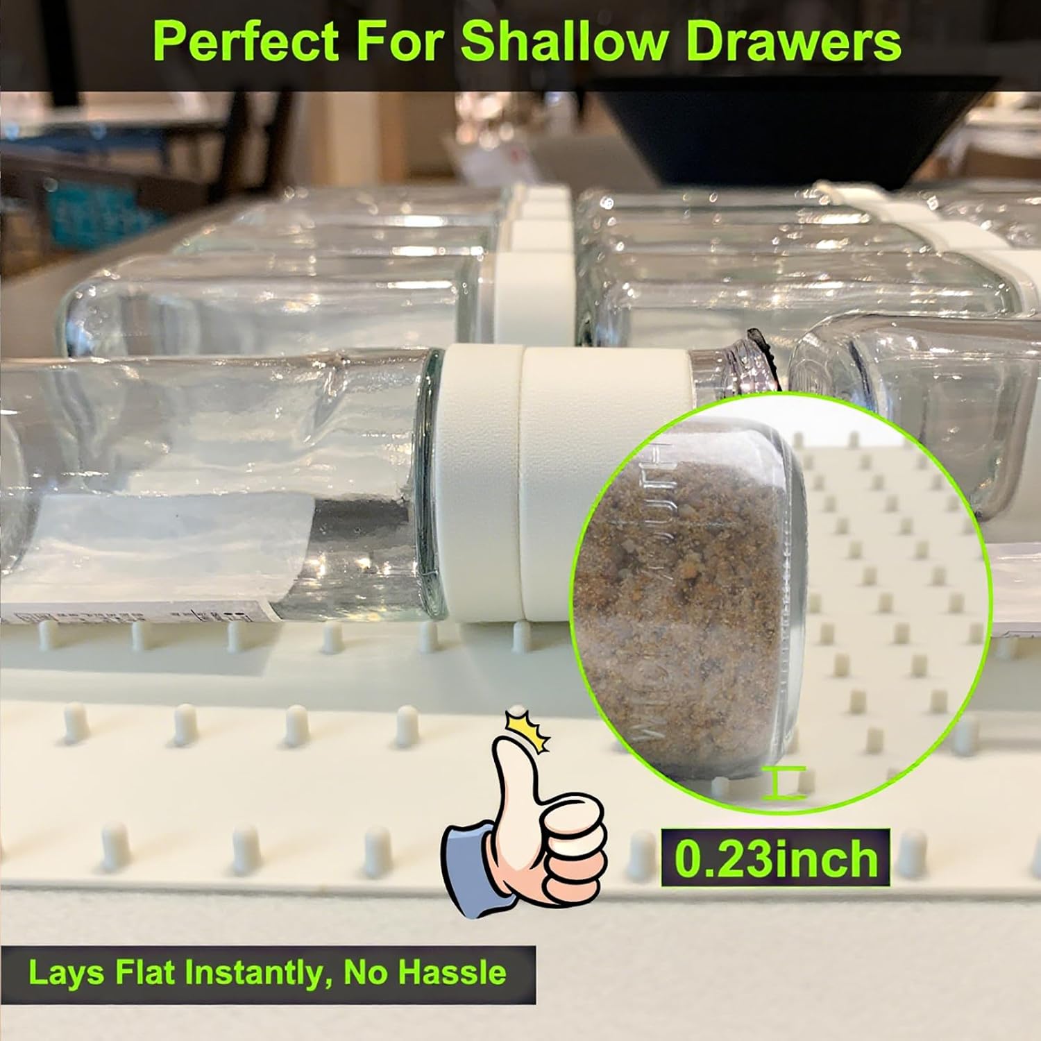 Gosmol Spice Drawer Organizer insert, Adjustable & Non-Slip Silicone Spice Drawer Liner, in Drawer Spice Organizer for Seasoning Jars and Spices Bottles Spice Rack -Pearl