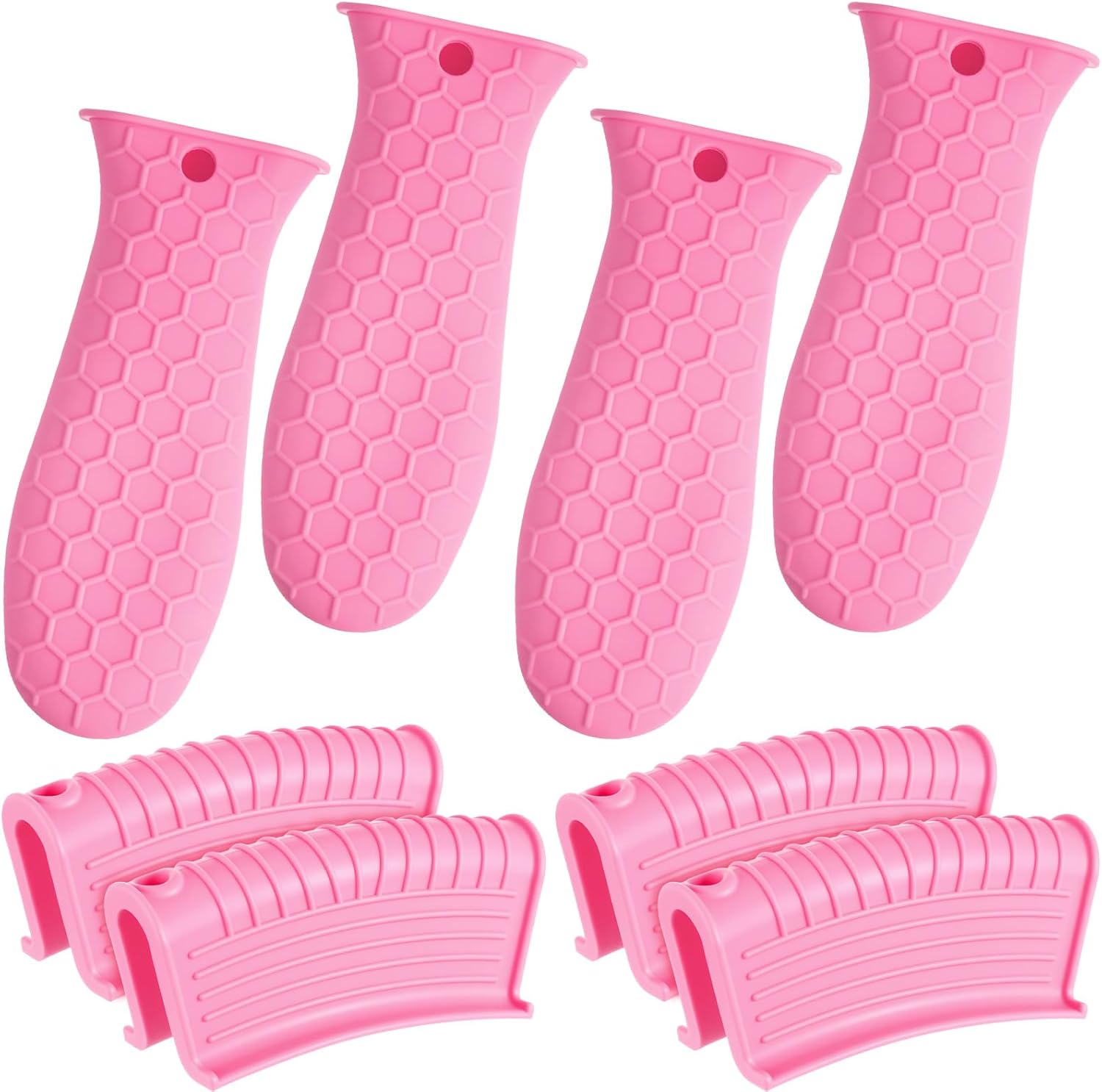 - Package Content: there are 4 pieces of silicone hot handle holders that come in pink, 4 pieces of silicone assist handle holders available in pink, enough quantity and classic style enough for your daily use, can be changed and shared, and easy to find; Suitable for using at home, travel or camping, nice gift for Mother's day, birthday, holidays, housewarming, chef and hostess