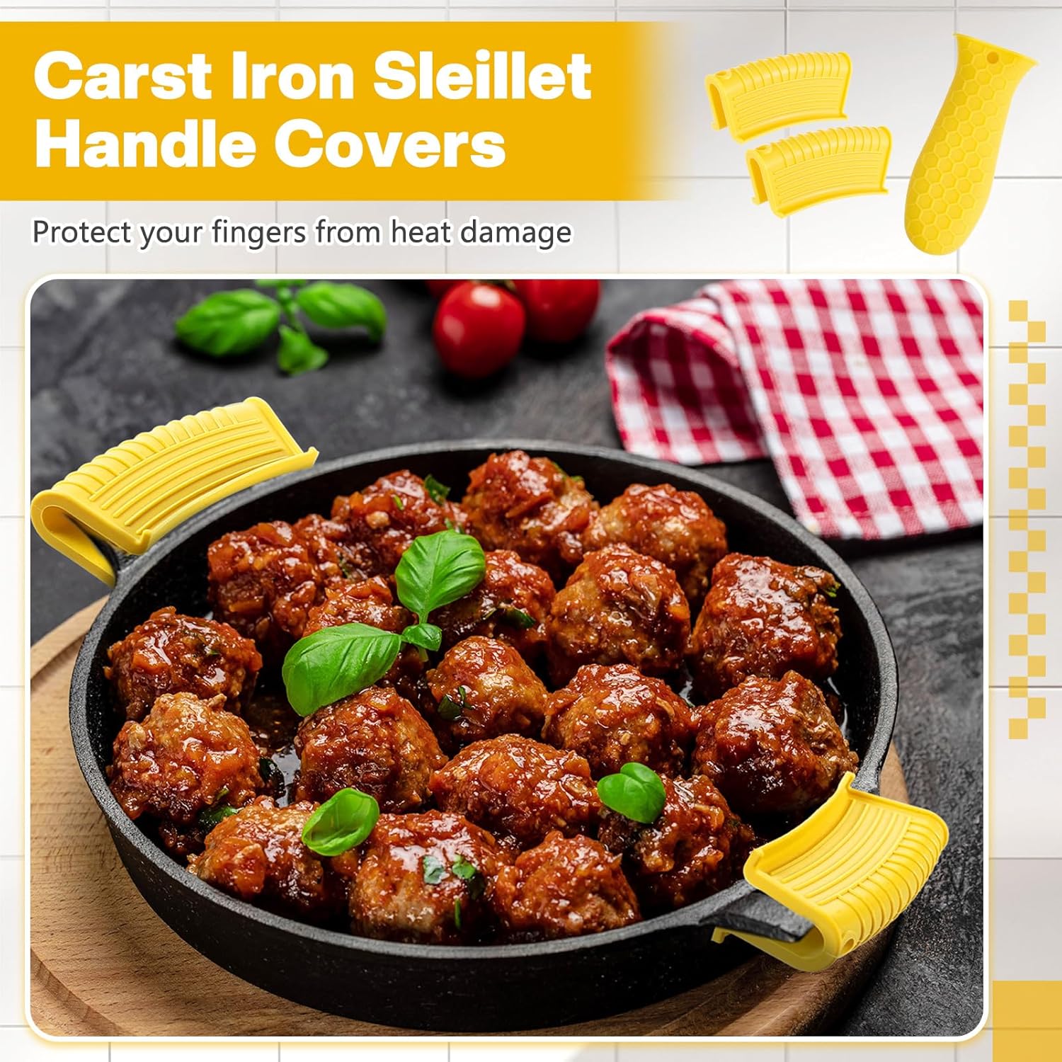 Patelai 8 Pcs Silicone Pot Holders Cast Iron Handle Cover Heat Resistant Pot Handle Covers Potholder Non Slip Reusable Pan Sleeve for Frying Pan Kitchen Supplies(Yellow)