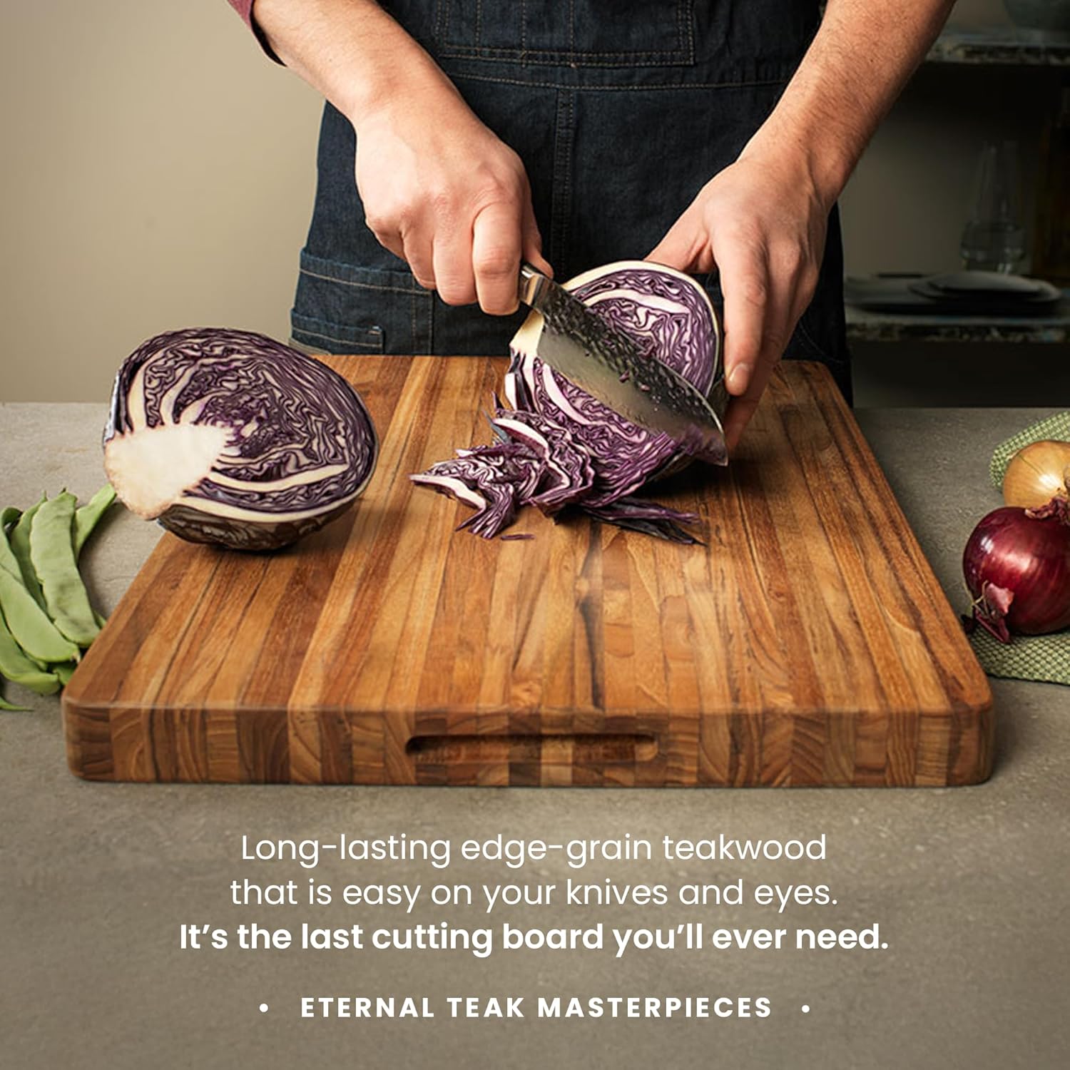 - Cutting Board Made of Real Teakwood: The Teakhaus edge grain cutting board goes beyond function. Itโs naturally food-safe with superior moisture endurance. With an edge-grain aesthetics that embodies beauty, sustainability, and longevity, our teak cutting boards are the perfect surface for every task, whether you're slicing fruit, dicing veggies, or plating charcuterie.