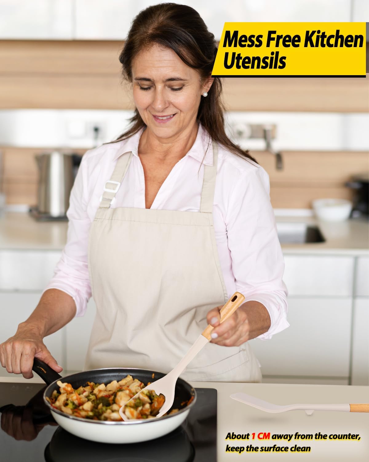 - Thoughtful Design: The little bulge design prevents the silicone head from touching the cooktop after cooking, effectively keeping the surface clean;Wooden handle keeps you away from the trouble of kitchen utensils rusting or breaking