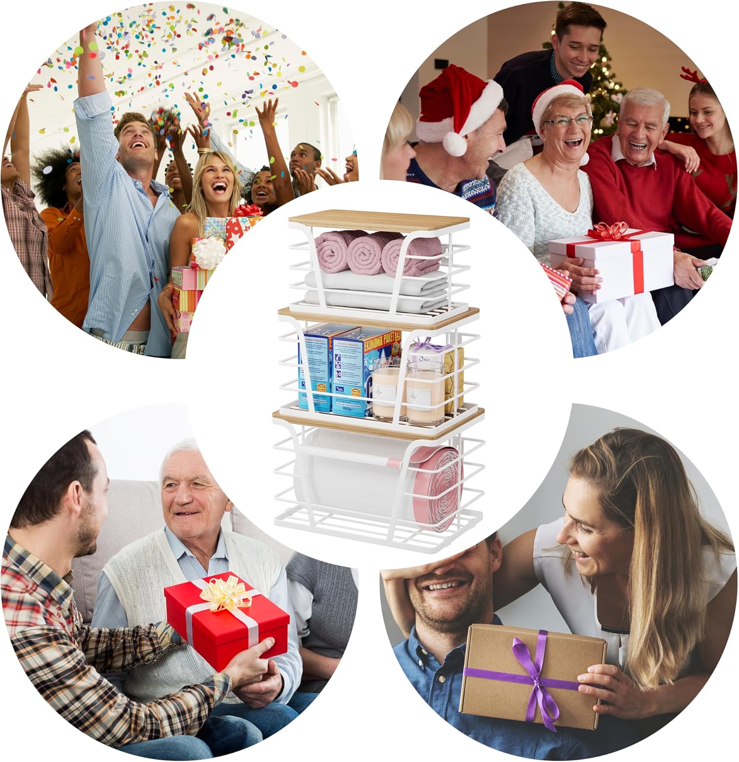 3 Pack Stackable Laundry Room Organization,Trash Bag Dispenser Under Sink, Countertop Organizer, Kitchen Sink Accessories,White