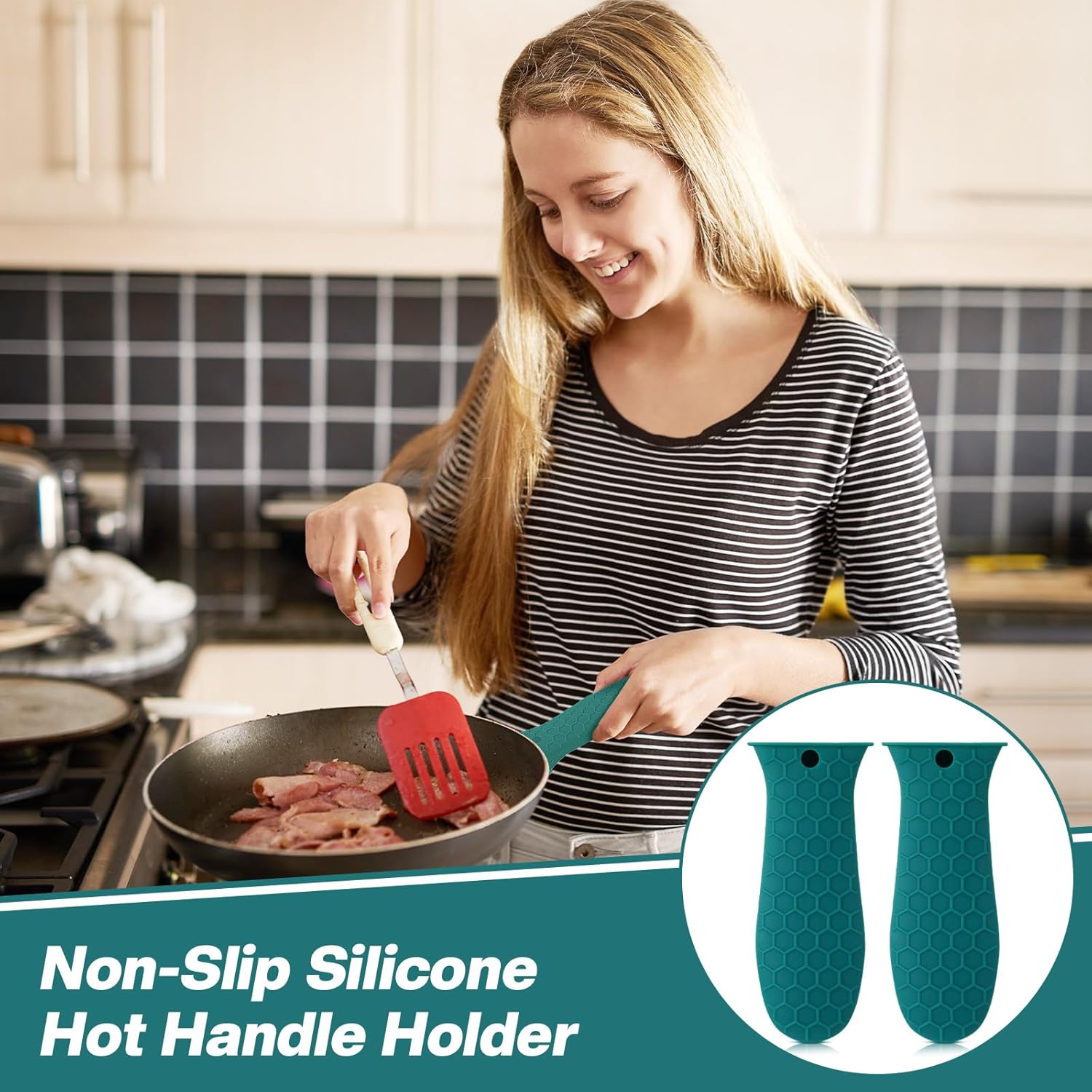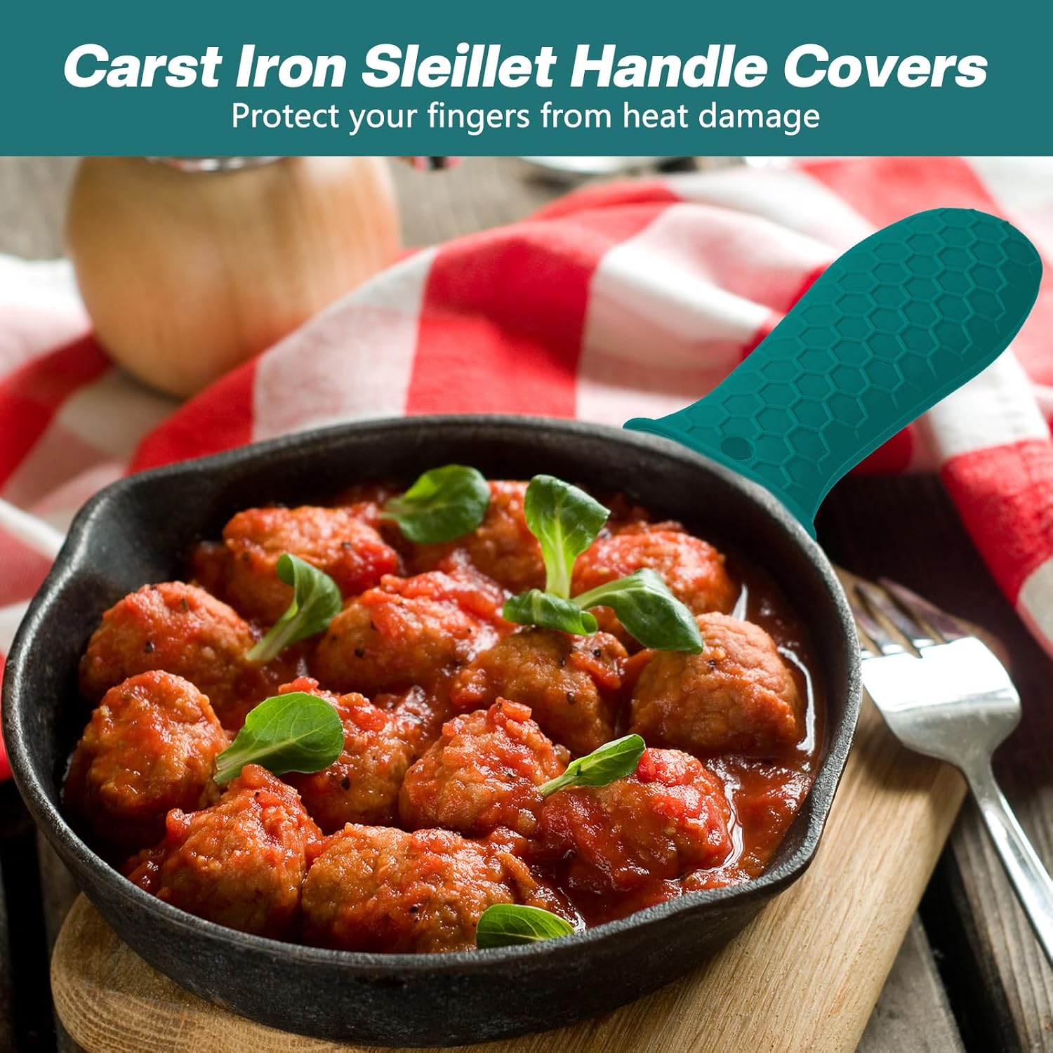 - Thoughtful Design with Anti-slip Texture: featuring a specially designed anti-slip texture and internal silicone ribbing, these cast iron handle sleeves effectively prevent slips and drops while handling hot cookware; This thoughtful design not only enhances safety but also allows for a confident grip, ensuring that you can maneuver hot pots and pans without fear of burns or accidents in the kitchen