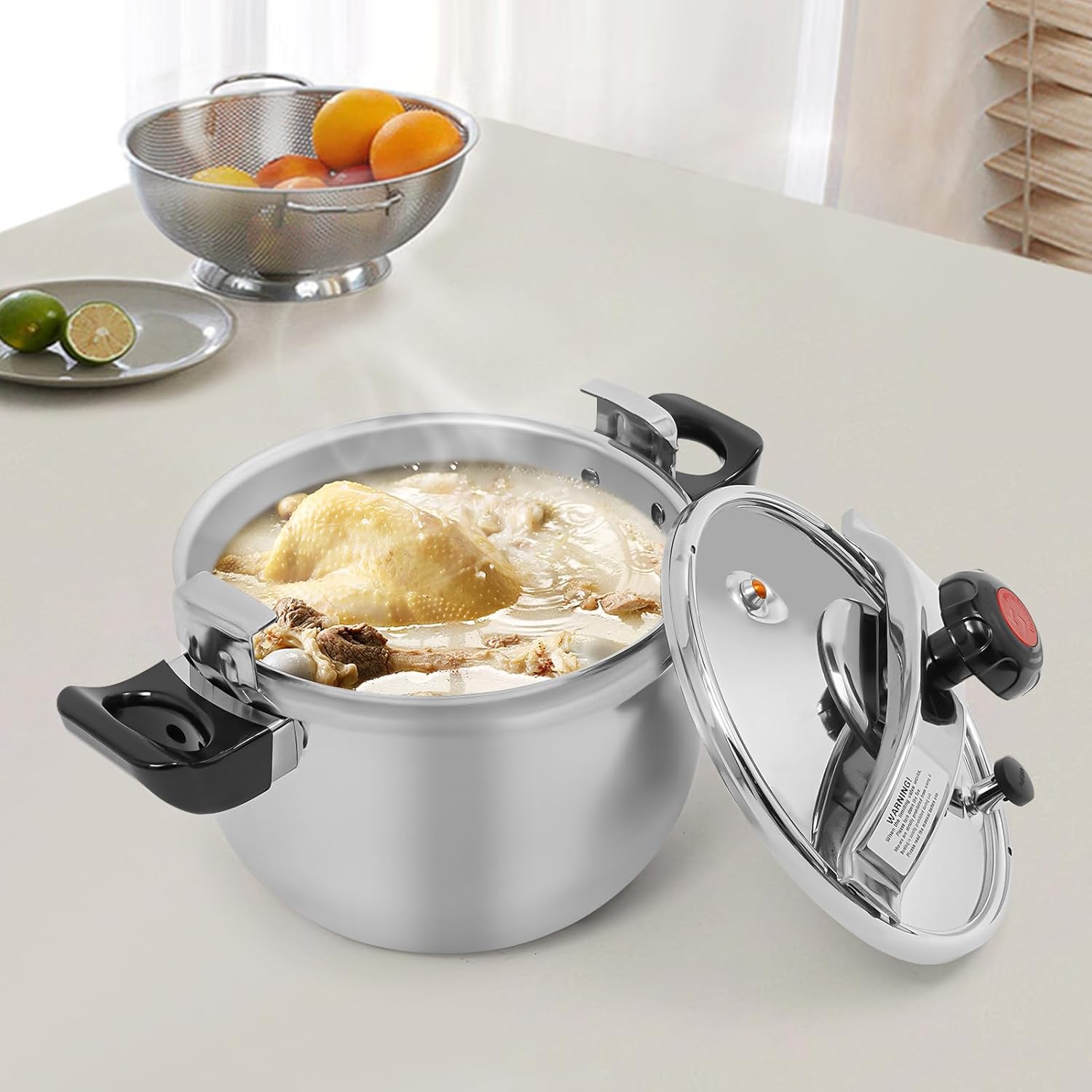 - 【Heavy-Duty Stainless Steel Pressure Cooker】This 11.6QT capacity commercial–grade pressure cooker is designed for high-volume cooking and allows you to prepare large batches of meats, soups, beans, and stews in less time.