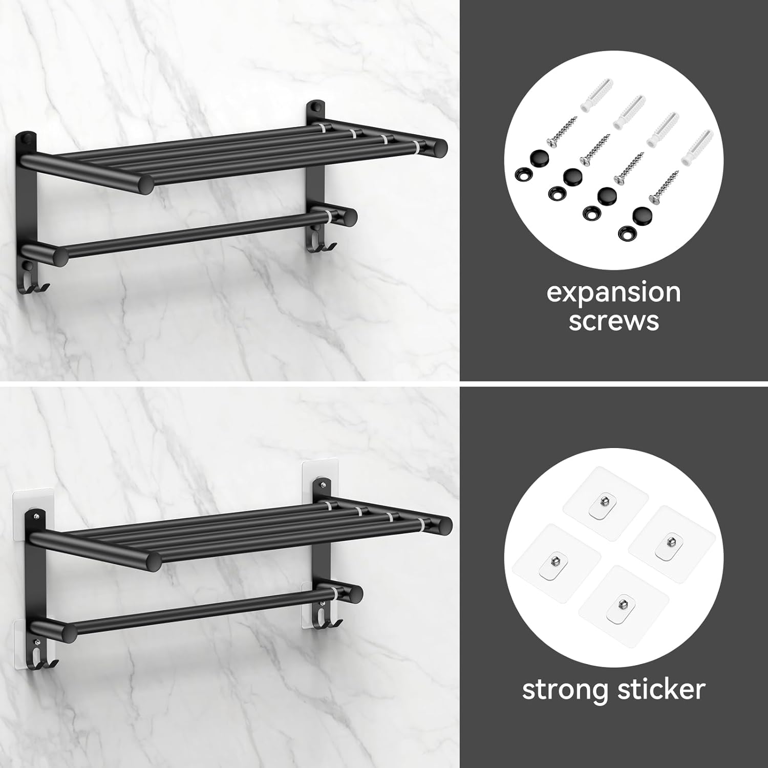 - 【 Easy installation 】: Without drilling holes, the towel rack can be installed using our matching adhesive to protect the wall; The towel rack can also be drilled and installed with screws.