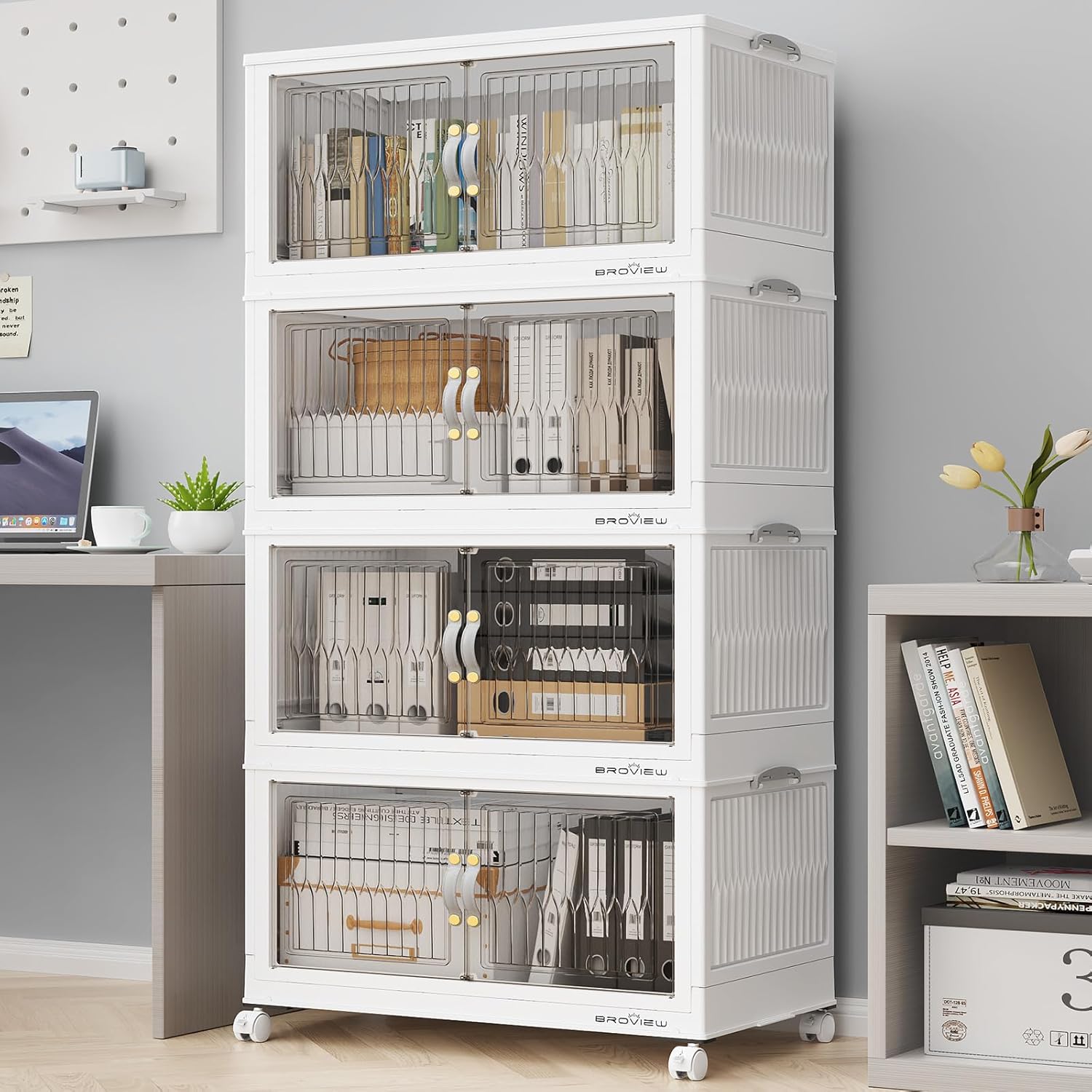 - 【5 Mins Easy Assembly & Warm Tips】The stackable storage bins open front only take 5 minutes to assemble the entire storage cabinet. Thanks to the foldable and stackable design, Broview v8 stackable storage bins can be disassembled and folded at any time when not in use. Warm Tips: Currently only 120QT black come with multi Lid, other need to be purchased separately.