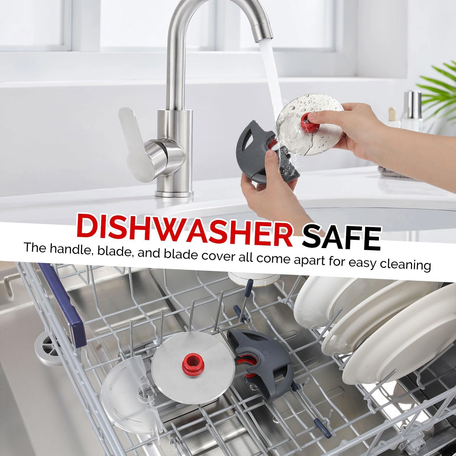 - Dishwasher Safe - The handle, blade and blade cover all come apart and are top-rack dishwasher safe, making sure no food bits are stuck and left behind.