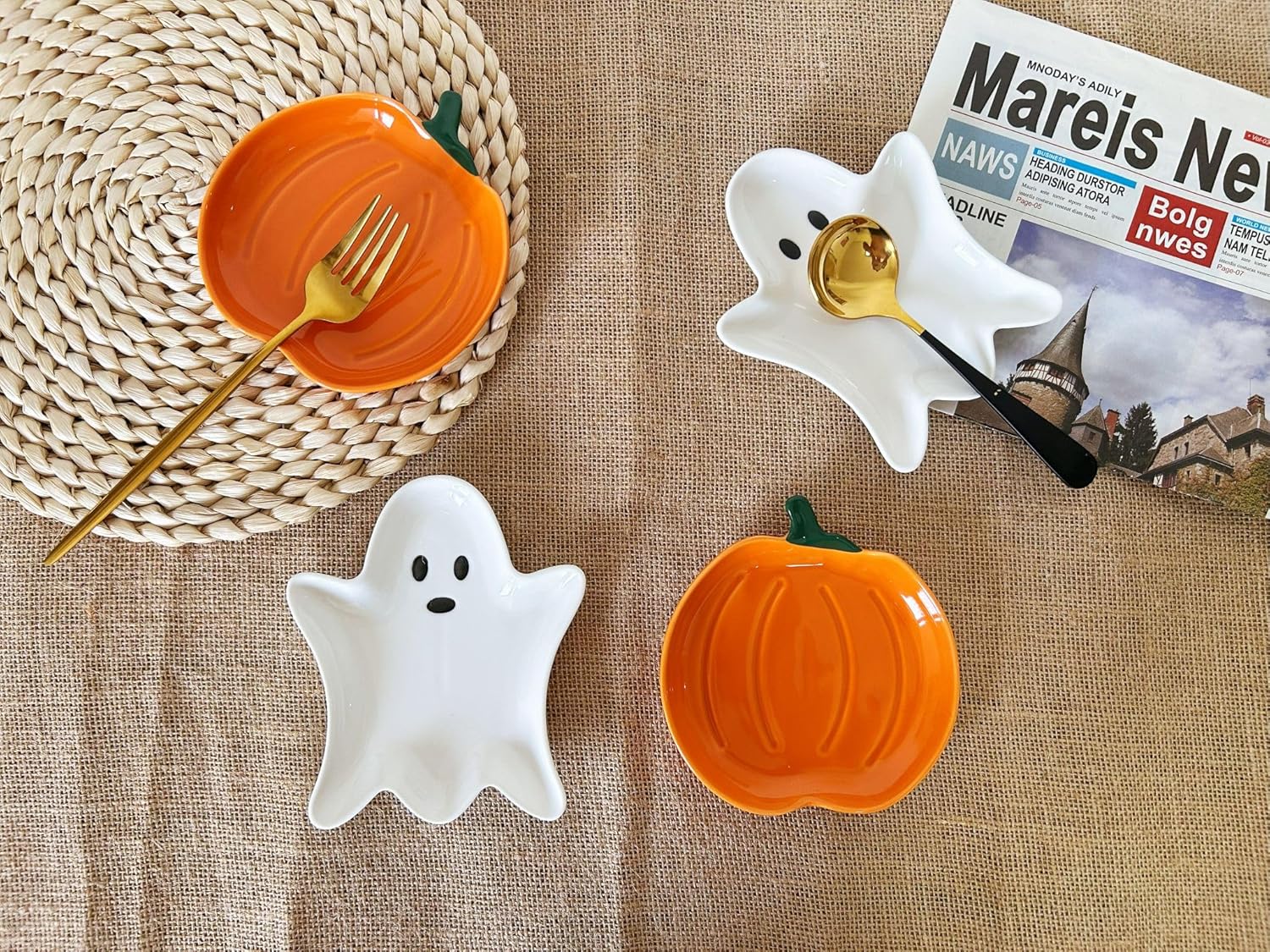 Ceramic Spoon Rest for Stove Top, Halloween Pumpkin Cute Spoon Rest for Kitchen Counter, Cooking Spoon Holder for Kitchen Counter, Utensil Rest Spatula Rest Ladle Holder Tong Rest (Orange)