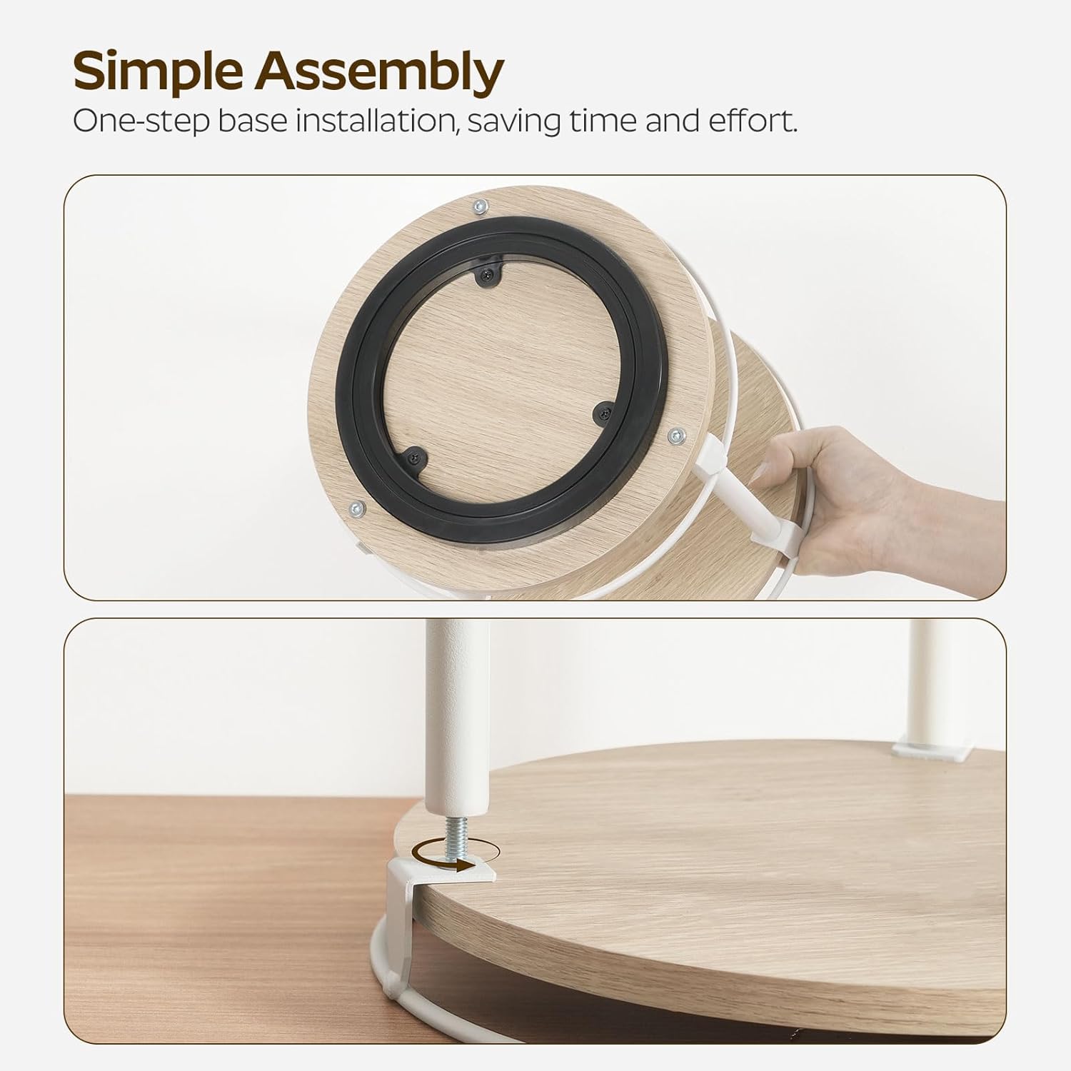 Lazy Susan Organizer, Rotating Spice Rack, 2 Tier Spice Turntable Organizer, Industrial Turntable Spice Holder, for Kitchen Countertop, Compact and Versatile, White and Light Oak SR22WG