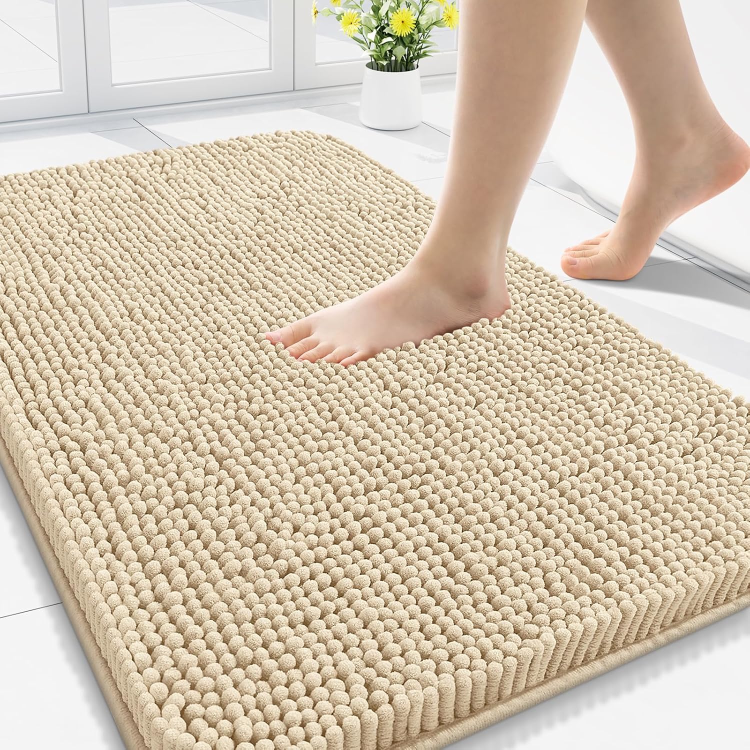 Arotive Bathroom Rugs 30x20, Extra Soft Absorbent Shaggy Chenille Bath Rugs, Machine Washable Rubber Backing Non-Slip Bath Mats for Bathroom Floor Tub and Shower, Home Decor Accessories, Beige