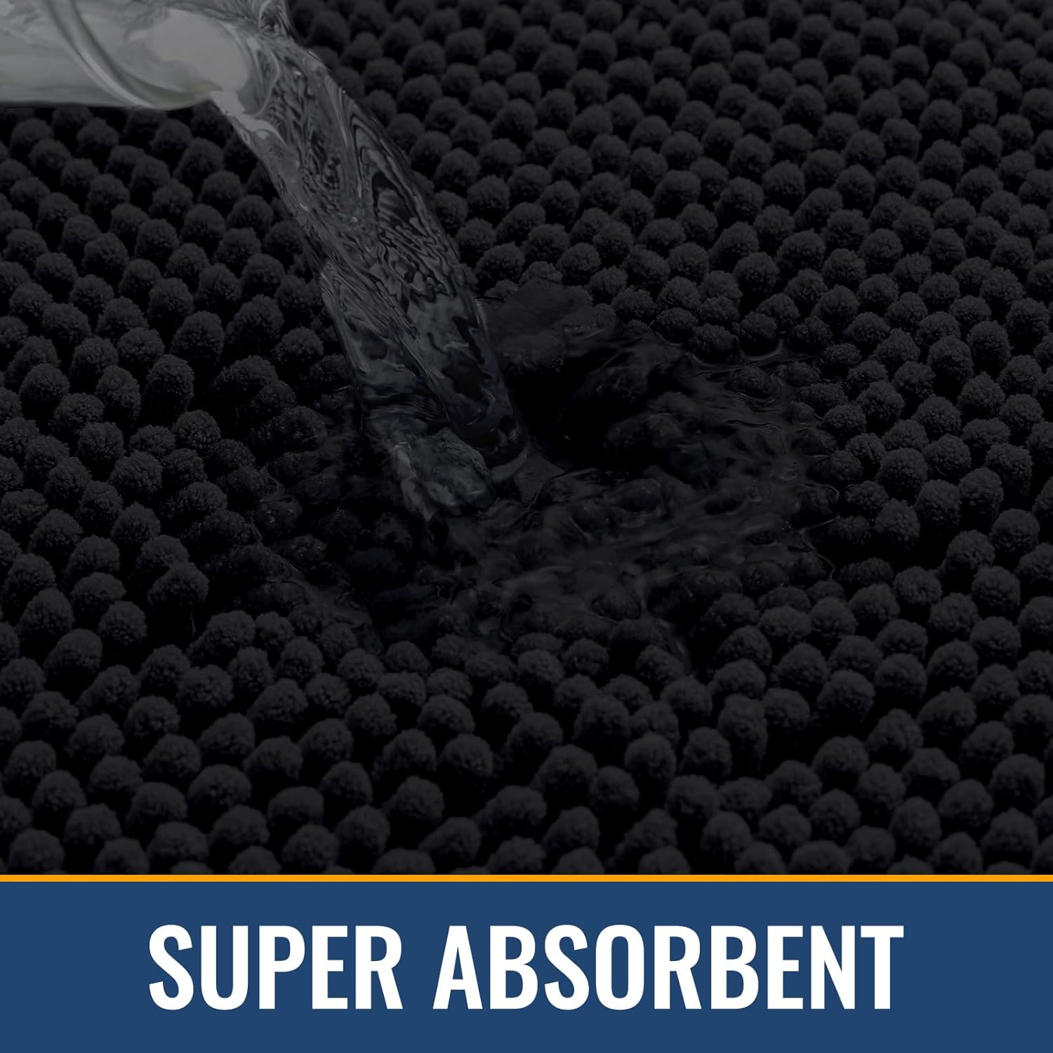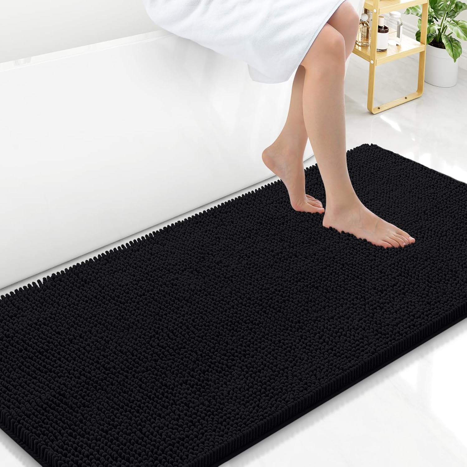 Arotive Bathroom Rugs 47x24, Extra Soft Absorbent Shaggy Chenille Bath Rugs, Machine Washable Rubber Backing Non-Slip Bath Mats for Bathroom Floor Tub and Shower, Home Decor Accessories, Black
