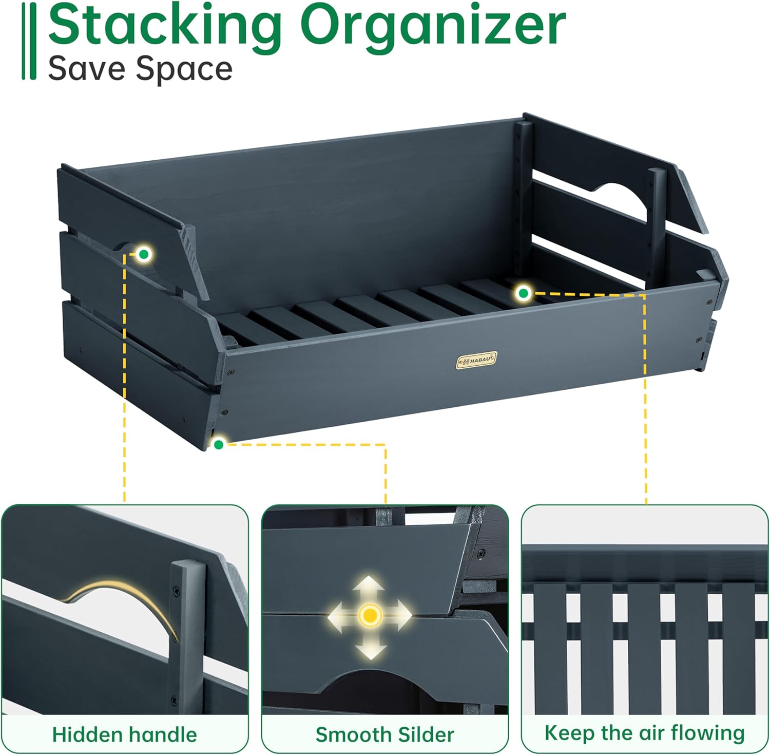 HABAU Wood Potato Onion Storage Bins - Wooden Stackable Produce Basket - Fruit Vegetable Storage for Kitchen Pantry Organization
