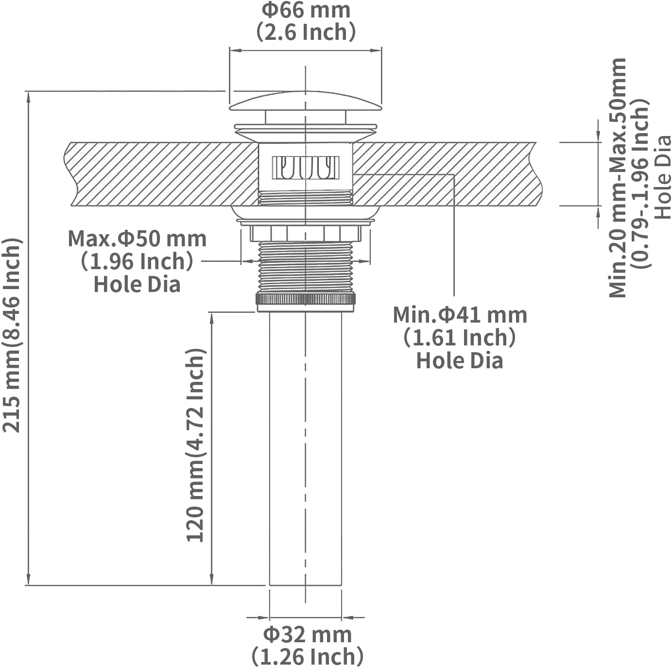 - 【Suitable Size】:Our sink stopper bathroom drain are suitable for sinks with overflow. Fits bathroom drain holes 1.61" to 1.96" in diameter, and fits PVC drain pipes with 1.25" to 1.5" diameter. The Maximum basin thickness is 1.96 inches. Please measure the size of your sink hole before purchasing to ensure that the product is suitable for your sink (NOTE: actual color may vary slightly depending on monitor settings).