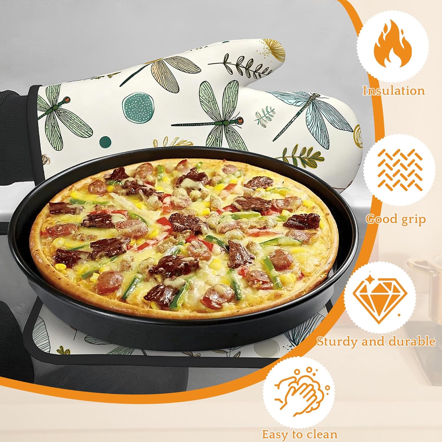 Vintage Dragonfly Oven Mitts and Pot Holders,Boho Heat Resistant Oven Mitts Gloves and Pot Holder for Home Kitchen Decorations Cooking Baking BBQ Gifts,Set of 4