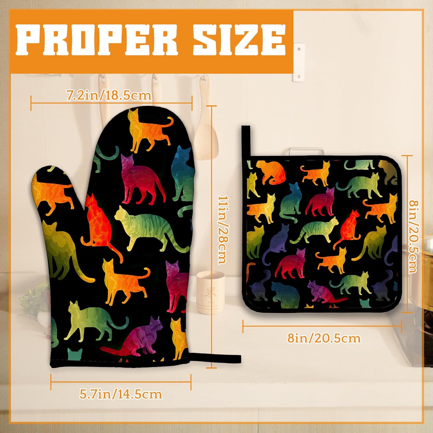 - Stylish Design:Funny Colorful Cat patterns bright colors,unique prints are exquisite decorations for your kitchen.Brightly colored designs will surely impress your guests and enhance the atmosphere of your kitchen,making your kitchen less monotonous and more lively.