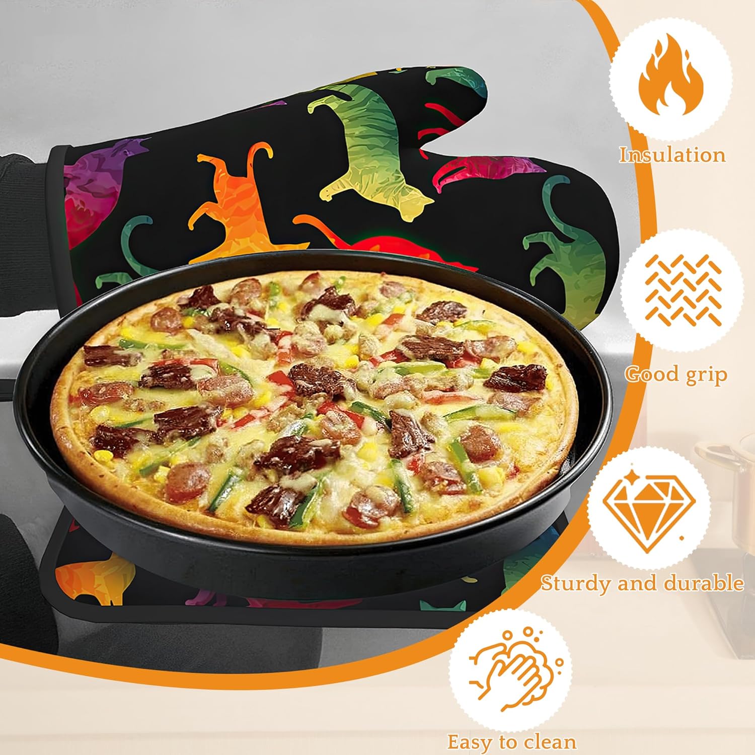 - Heat Resistant: Made from polyester and insulating cotton, these oven mitts and pot holders provide excellent heat resistance to effectively protect your hands from hot pots, pans, and baking trays. Cook with confidence and safety.