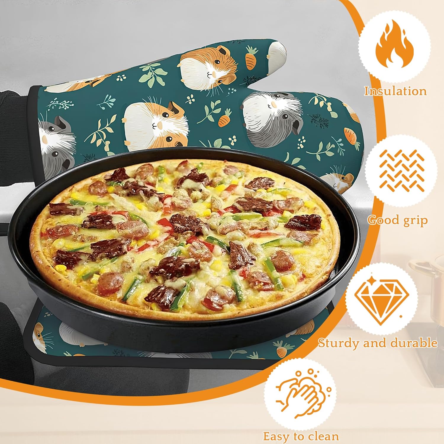 Cute Guinea Pig Oven Mitts and Pot Holders,Heat Resistant Oven Mitts Gloves and Pot Holder for Home Kitchen Decorations Cooking Baking BBQ Gifts,Set of 4
